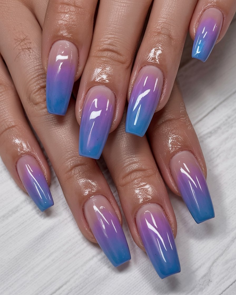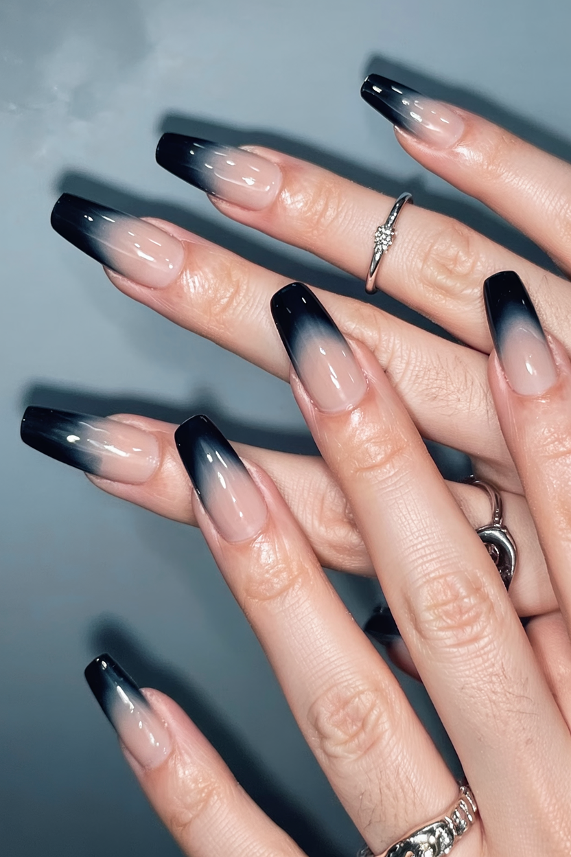 Such a daring gradient is an ideal selection of the person to achieve a high-contrast appearance without the loud colors. The acrylic length gives it shimmering effect and the neutral base enables it to be ready to be worn in everyday life despite the edgy touch in it.