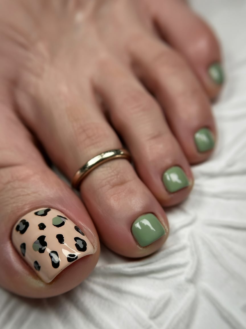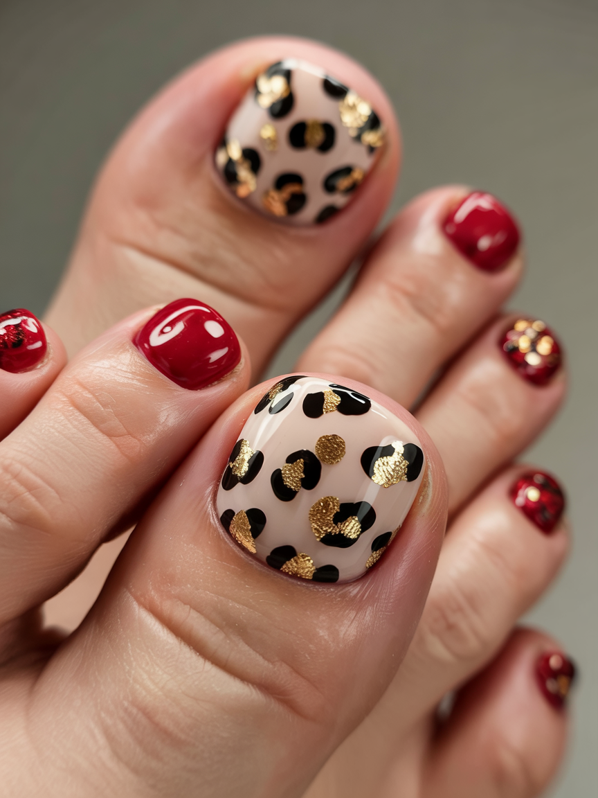 That is what happens when fun collides with fancy: traditional leopard print with glimmering gold. Combined with juicy red on the other toes, this is a look that shouts self-assured with a hint of crazy spirit.