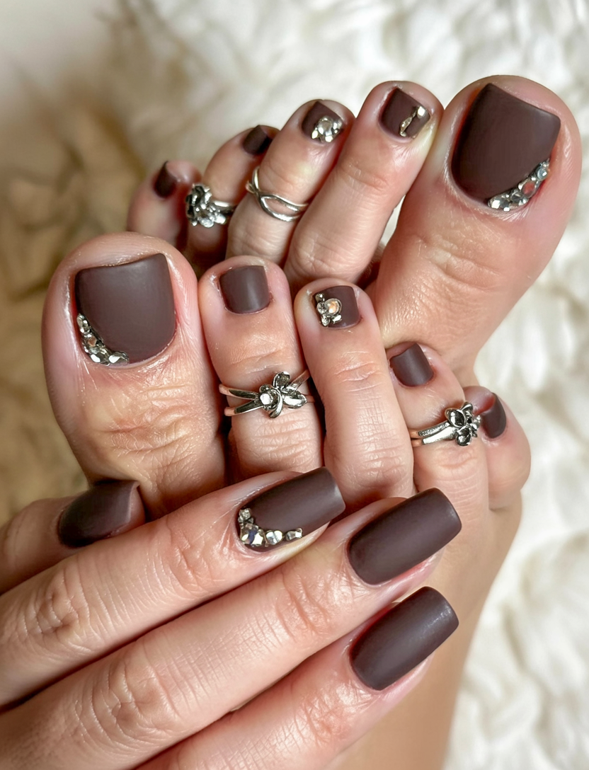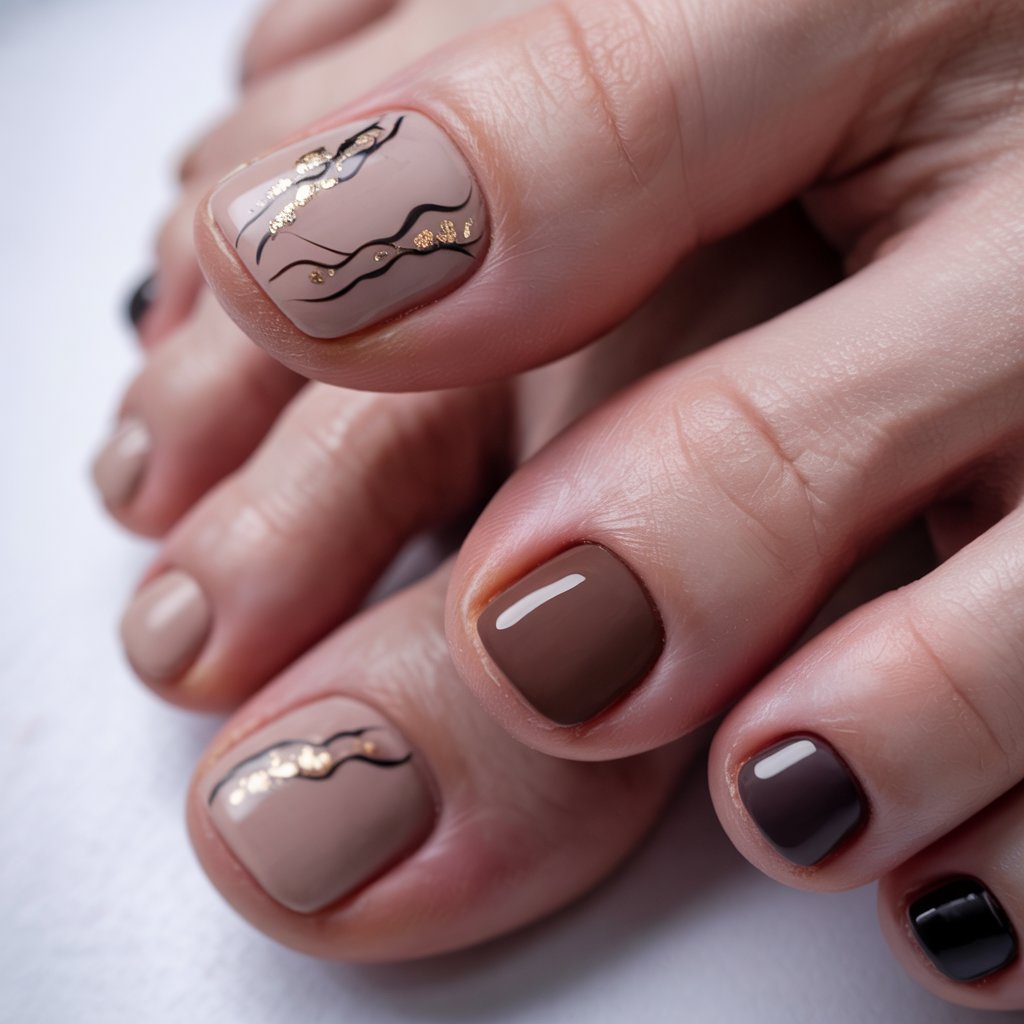 It is the killer seasonal statement and it suits best on light skin or someone who appreciates nails that keep conversations going. Do this when you would like your toes to tell you that fall has arrived without uttering a sound.
