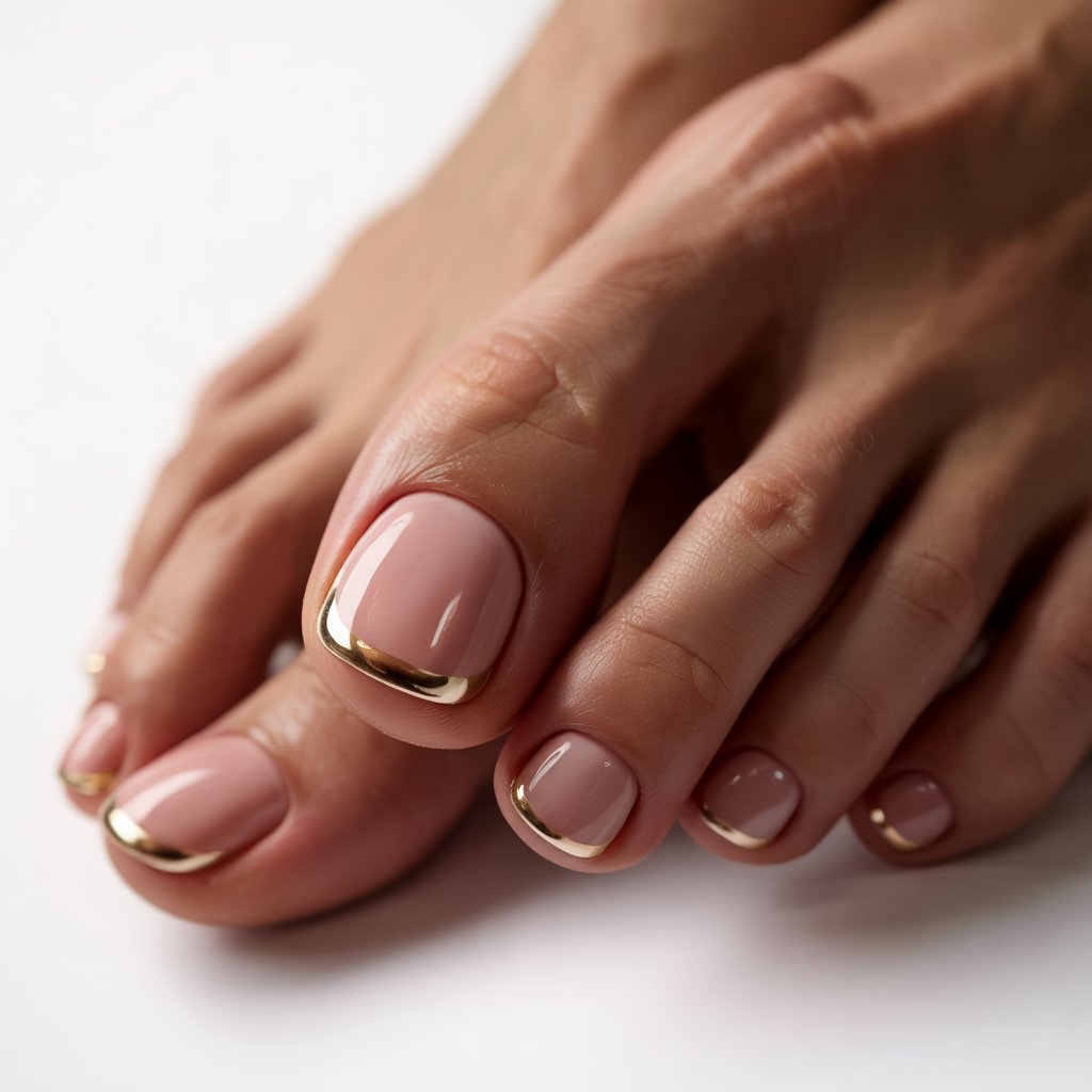 If luxury had a pedicure, this would be it. The combination of soft nude and ultra refined metallic gold-tips is elegant, classy, and classic. It’s the kind of design that whispers class.