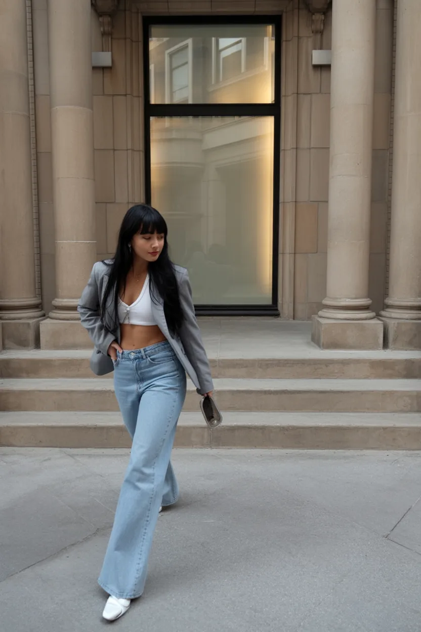 This haircut feels the most relaxed out of all in the best sense, like a woman enjoying her morning stroll coffee in hand, not rushing, just moving through the city on her own terms. The soft waves are not overly dramatic, adding movement so the whole look an easy confidence. This works beautifully for spring days when the cold is starting to fade.