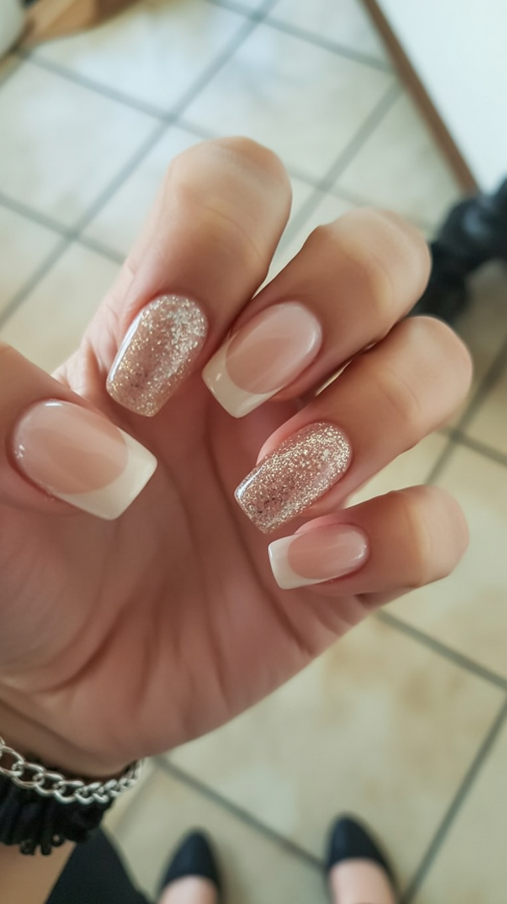 These are especially practical for medium-length oval nails. The glitter is concentrated at the tips, so regrowth is less noticeable. Perfect if you want something easy yet polished that you can wear daily, whether for work, coffee dates, or weekend getaways.