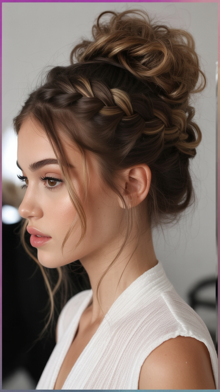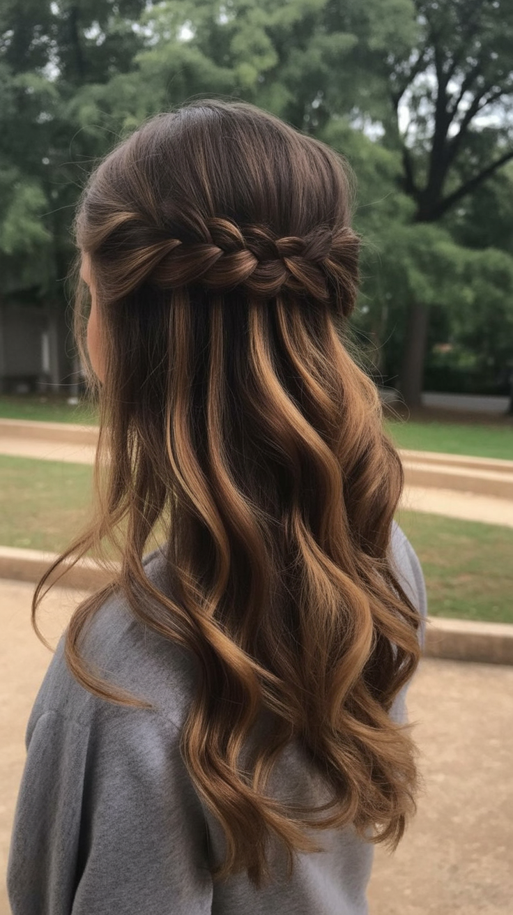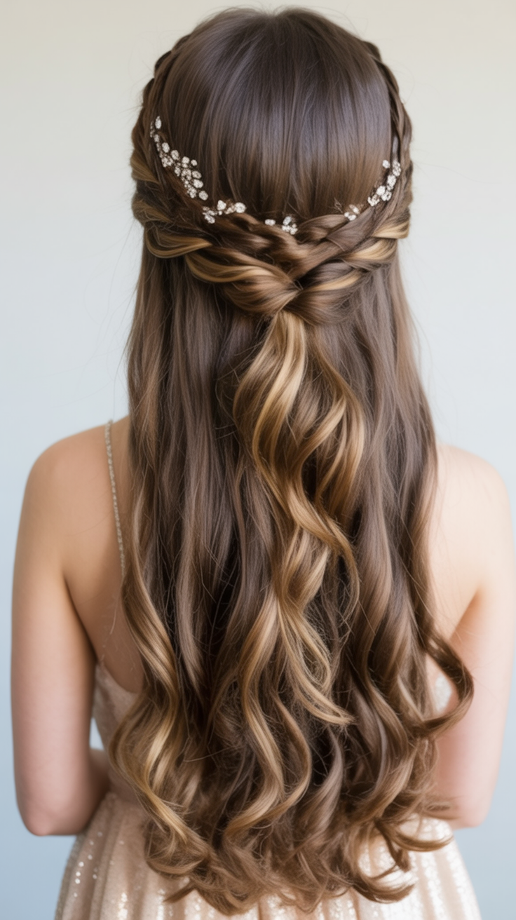 19. Half-Up Crown Braid with Loose Curls
