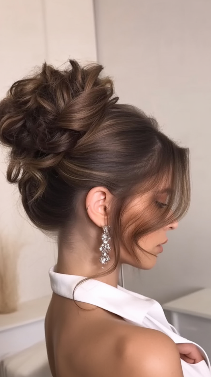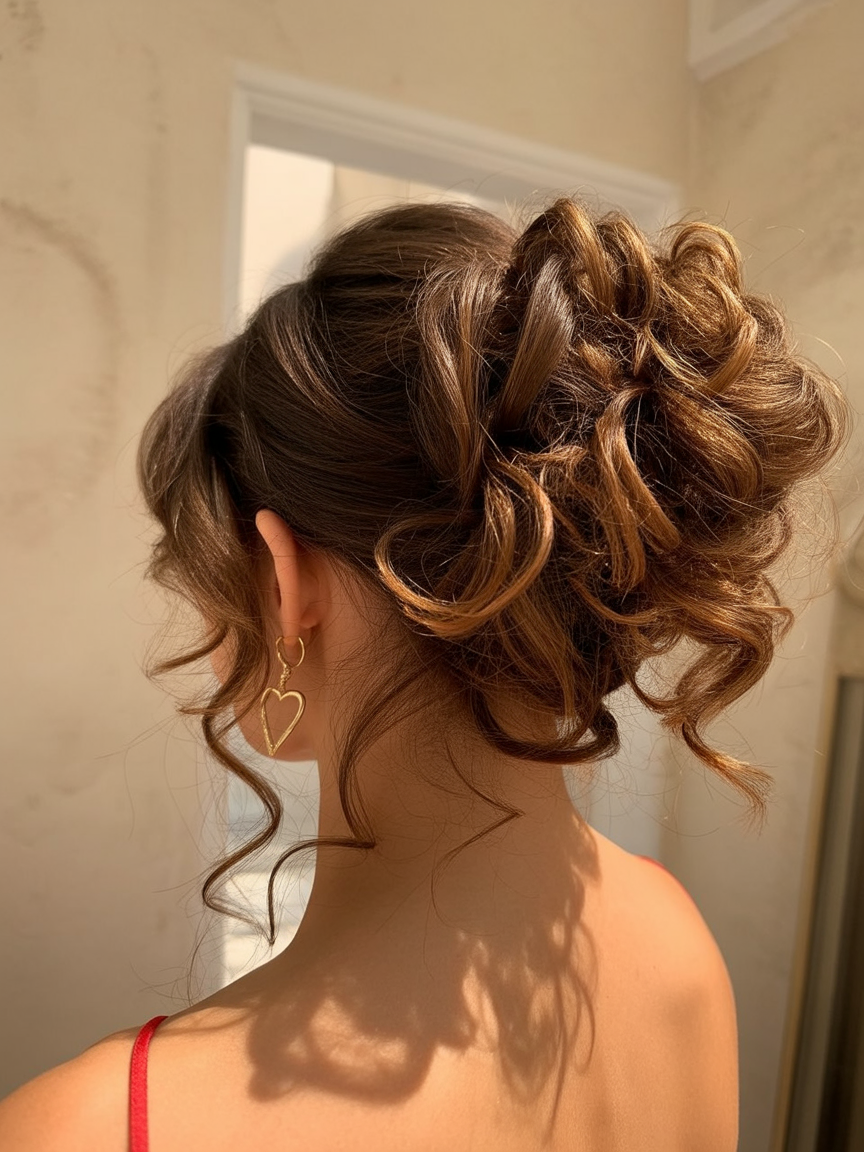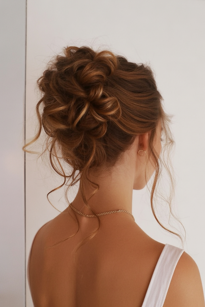 20. Curly Tousled Bun with Side Tendrils