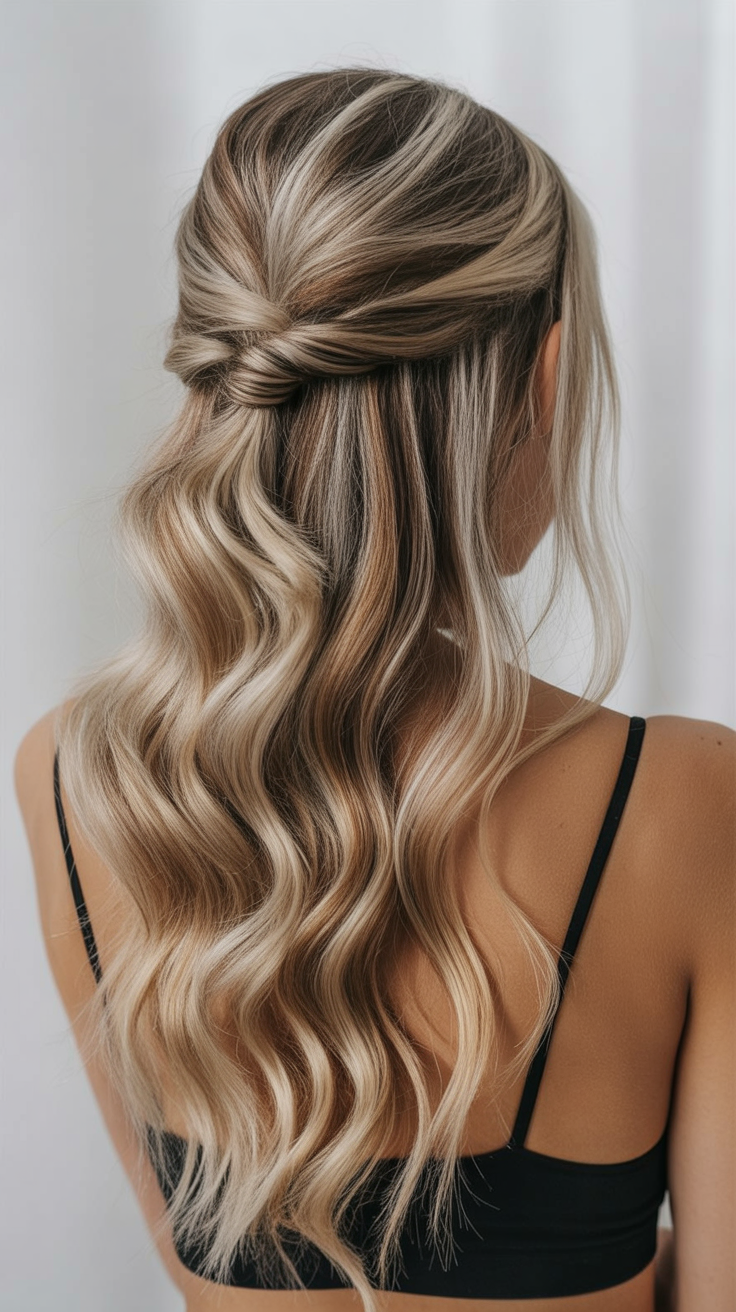 8. Soft Twist Half-Up for Blonde Waves