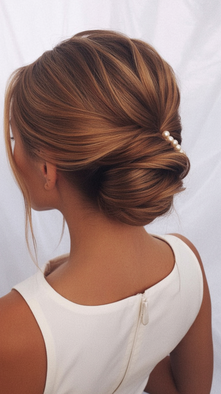 18. Twisted Low Chignon with Pearl Pin