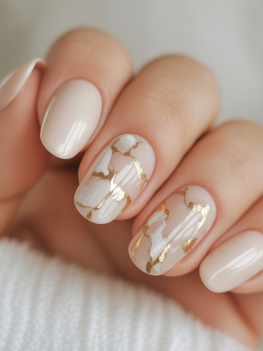 This design is sleeker to come across as ceramic in nature — all gold cracks piercing through creamy whites akin to veins on fine porcelain. It has both a delicate but powerful feel with the heavy art aesthetic of seriousness. In case you ever wanted to make your nails look like a piece of art in gallery, here is your inspiration.