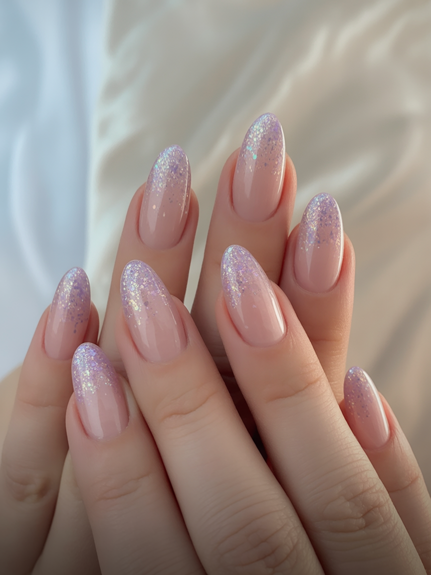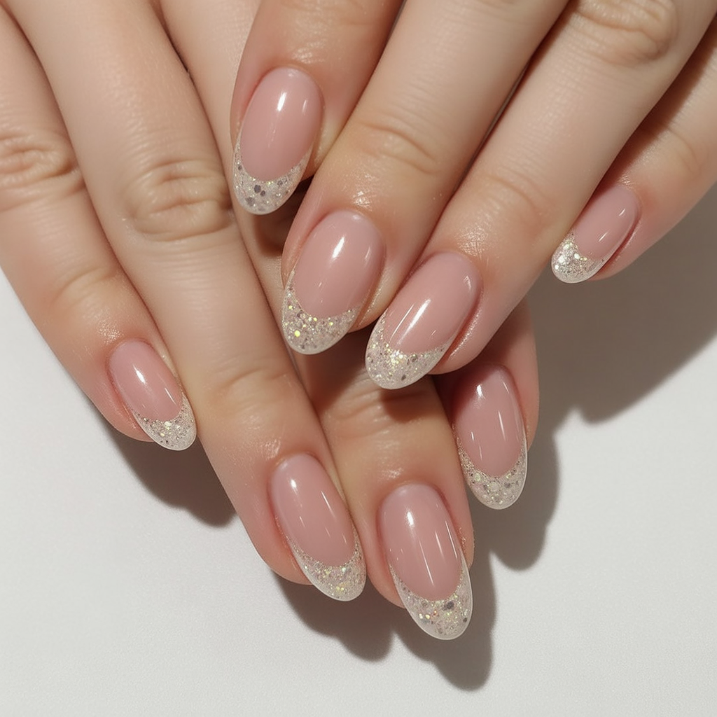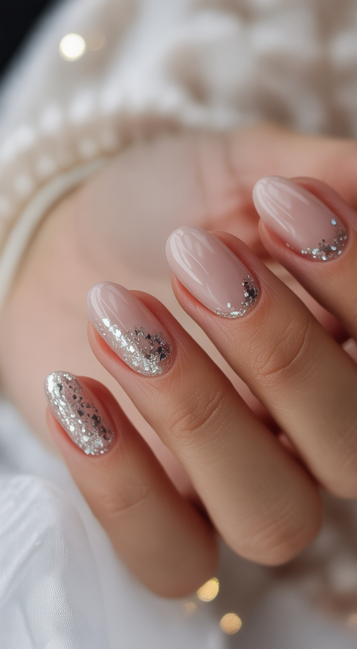 This modern twist on the French manicure is giving goddess-on-vacation. The sheer sparkly half-moons are perfectly placed on clear base, illuminating on each slight touch with your fingertips. It is the perfect compromise between fluffy and glittery- not too over the top, but still holiday cheer. This style looks retro and at the same time very much in line with the aesthetic of art in 2025 summer.