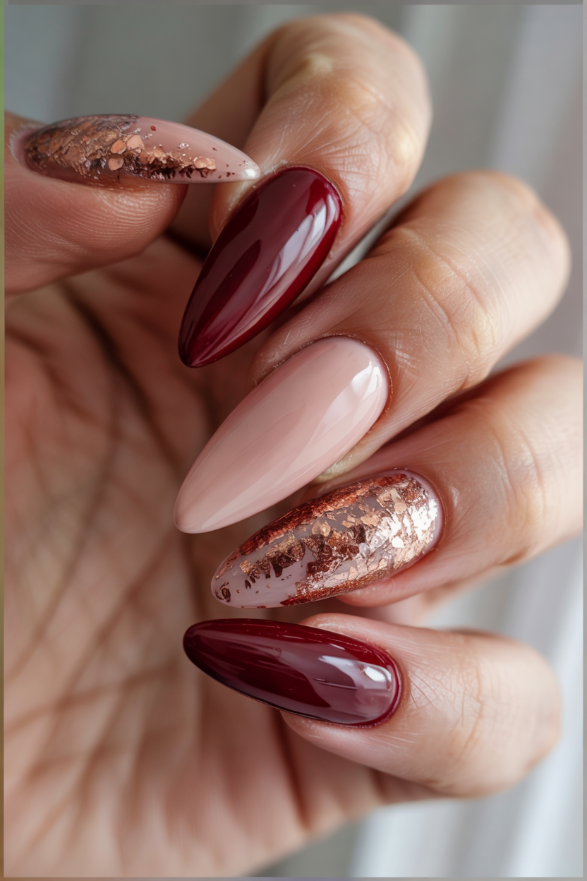 3. Wine-Red and Copper Luxe Mix