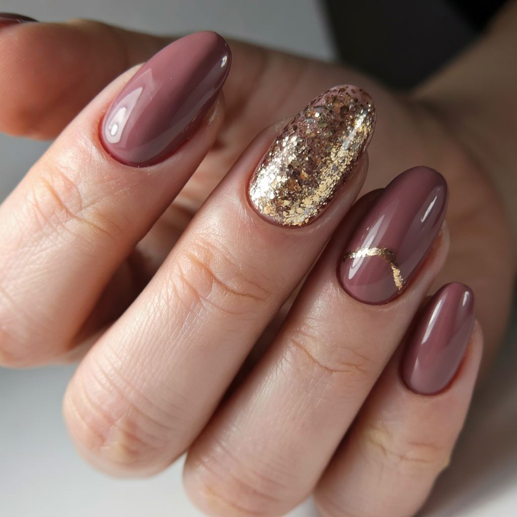 6. Rosy Mauve with Gold Glitter Accent