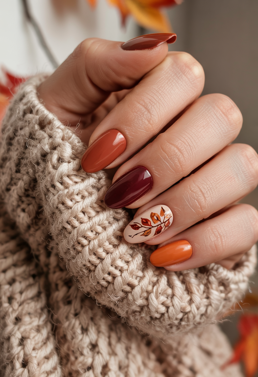 20. Autumn Colorblock with Leaf Detail