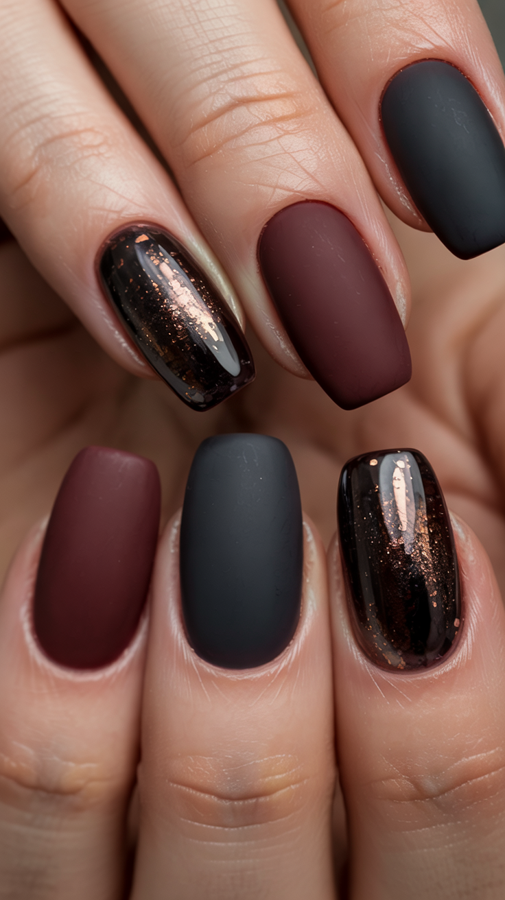16. Matte & Glossy Contrast in Berry and Black