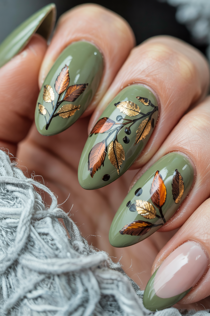 22. Olive Green with Golden Leaves