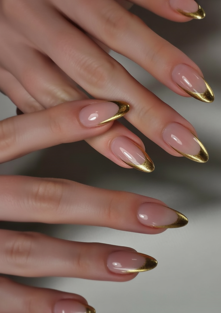 The quiet statement is sometimes the strongest statement. That is the same energy, subtle, feminine, and inexhaustibly chic, which these nude nails with a fine line of gold are capturing. They create the sense of being confident without being overly assertive.