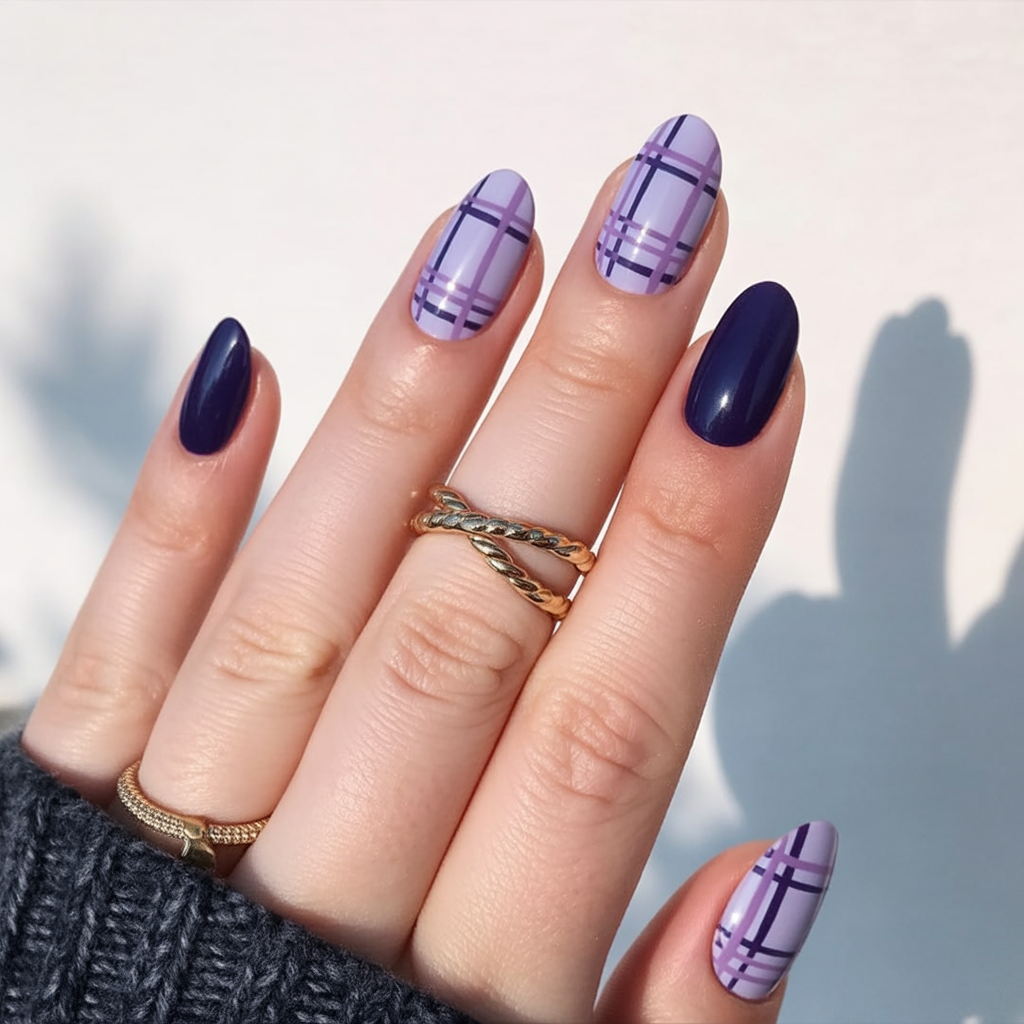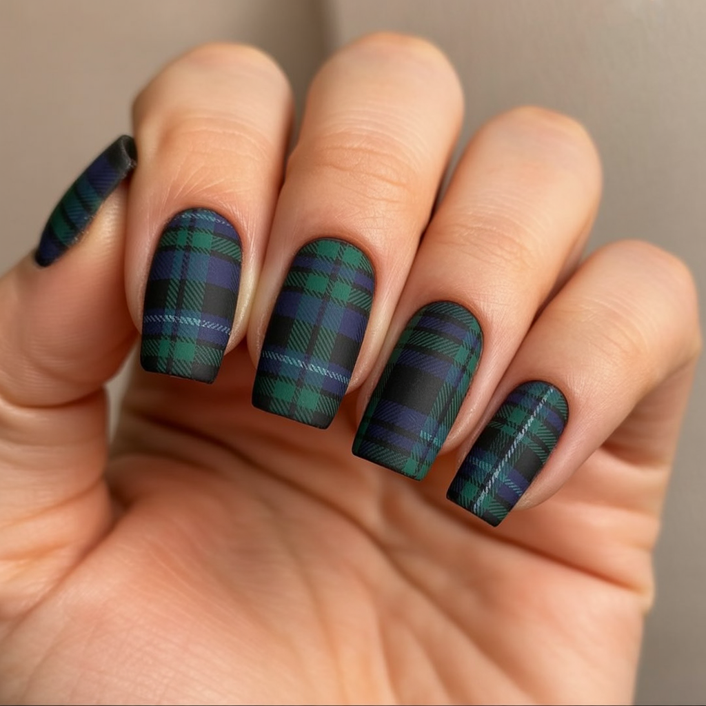 What makes this design special is its versatility. These darker tones work beautifully year-round but feel especially right during fall and winter. The plaid pattern adds structure, making nails look neat and intentional even as they grow out. It’s a great choice if you want something dependable, elegant, and easy to wear with almost anything.