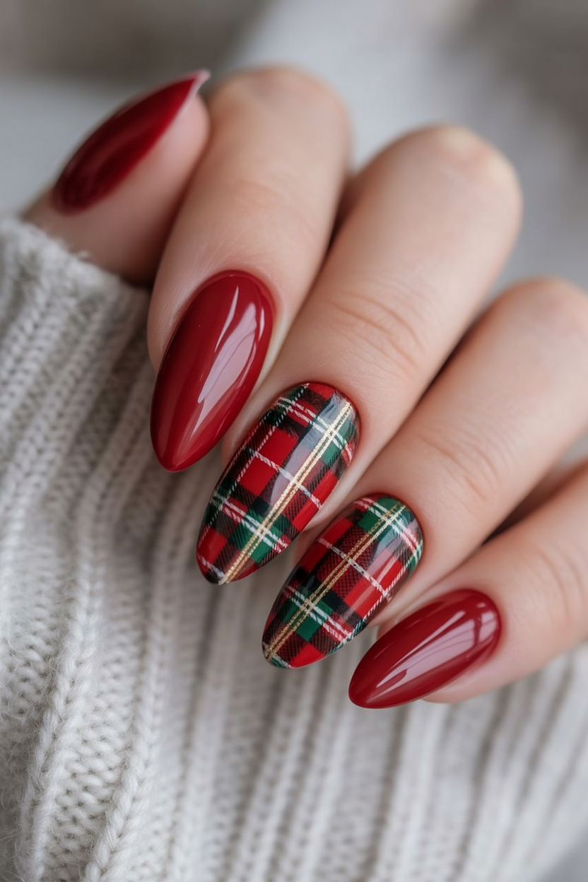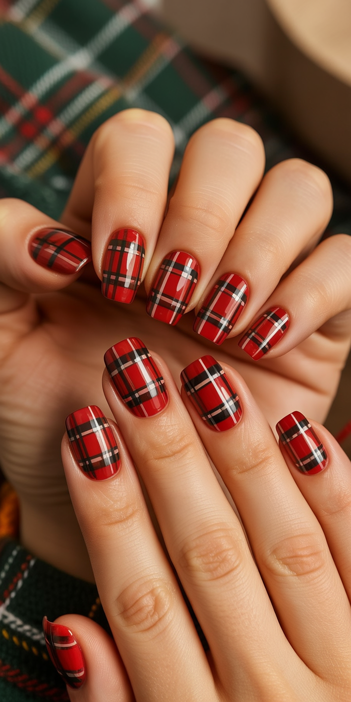 19. Classic Red Plaid Nails with a Cozy Winter Feel
