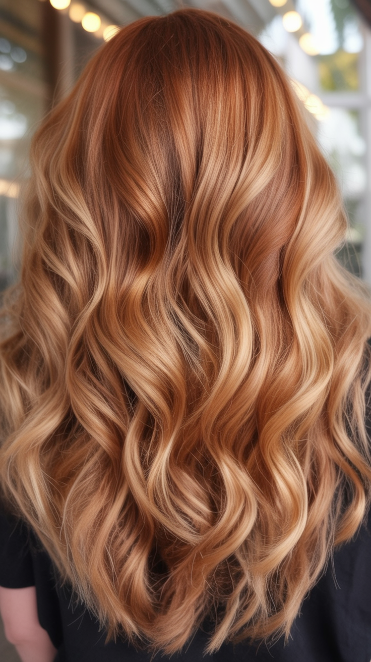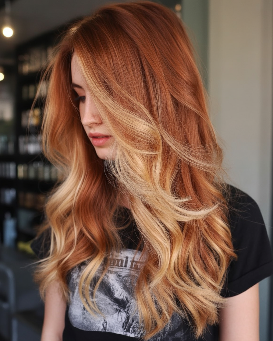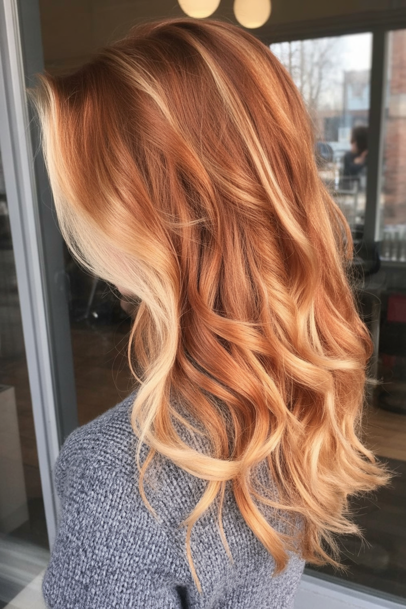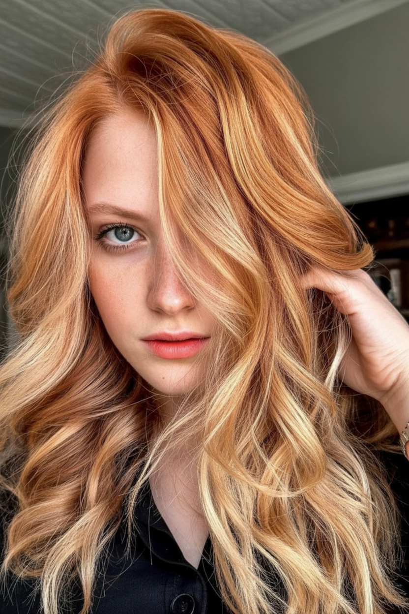 13. Long Ginger Waves with Soft Blonde Ribbons