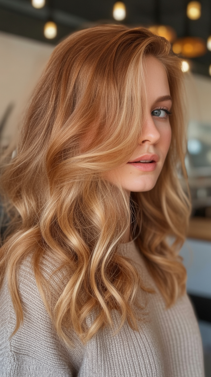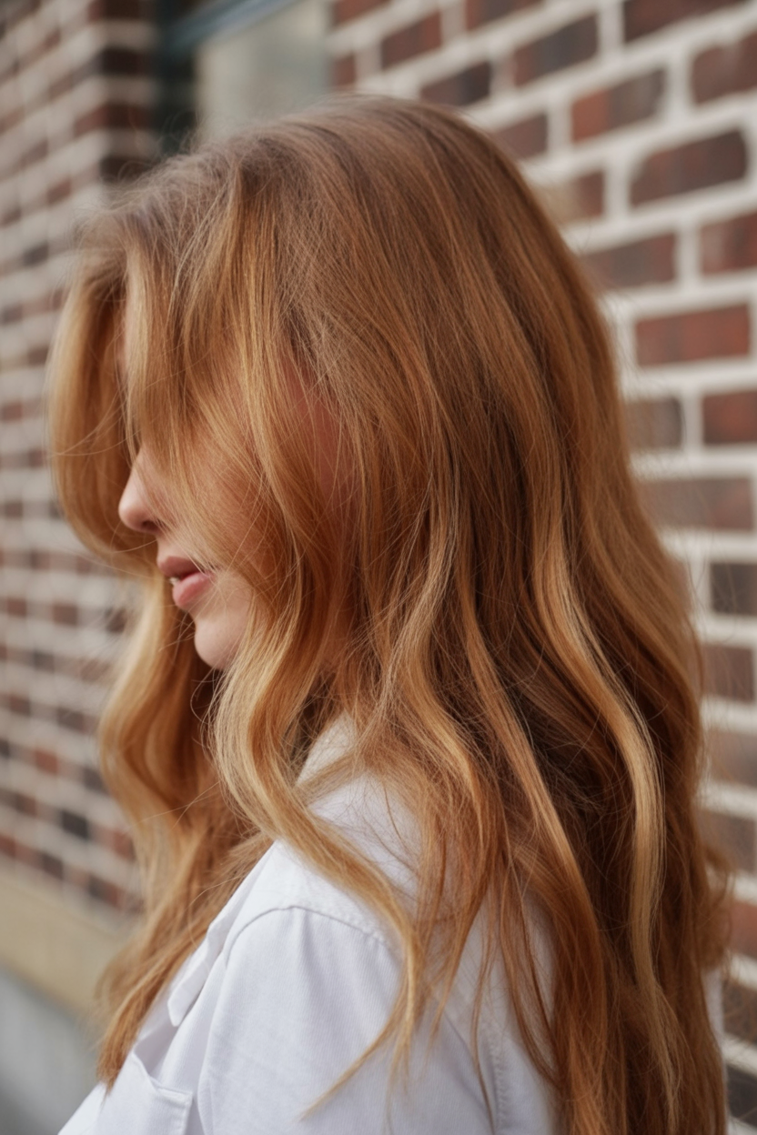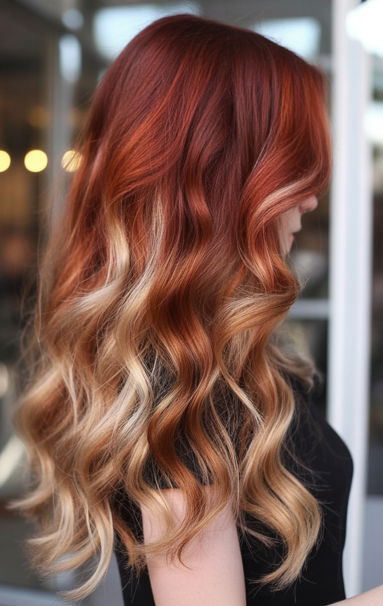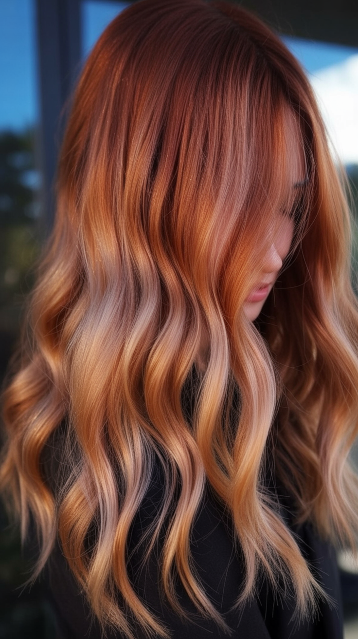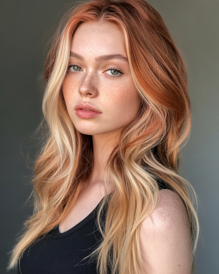 13. Long Ginger Waves with Soft Blonde Ribbons