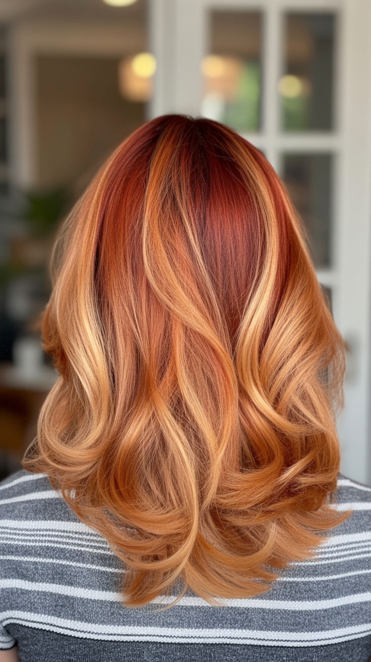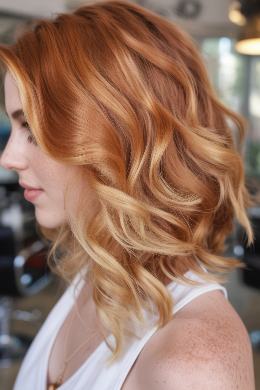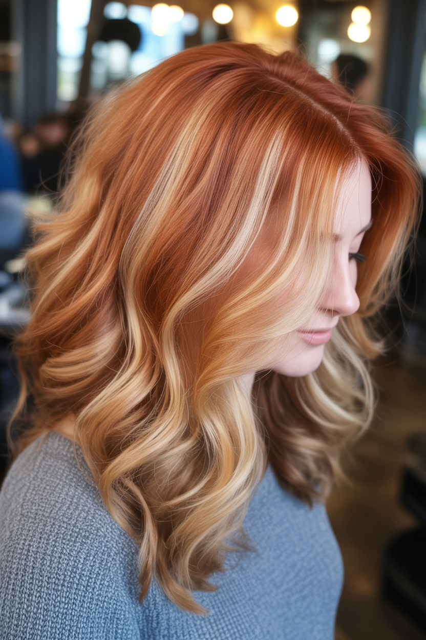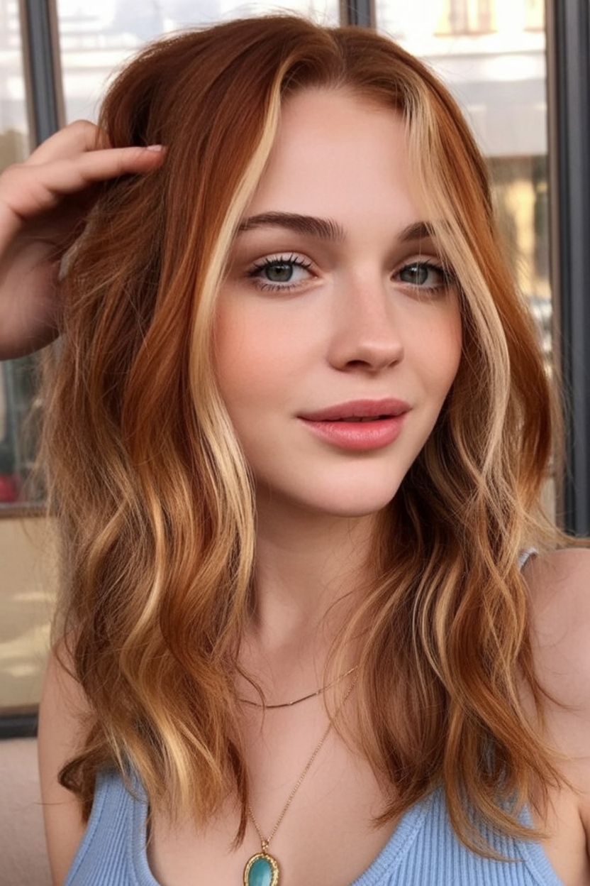1. Soft Ginger Waves with Face-Framing Blonde Ribbons