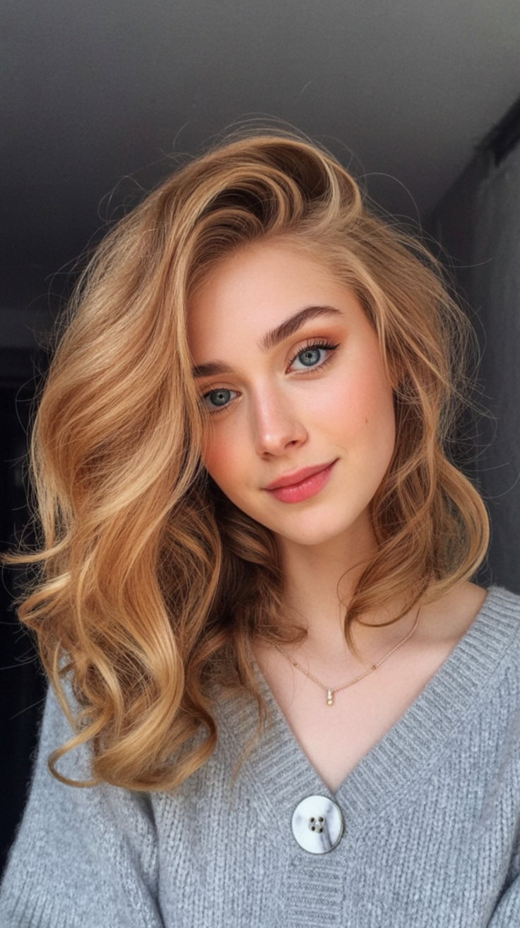 If you crave something beautiful but low-maintenance, this one is calling your name. The tousled finish keeps styling simple—just a bit of smoothing cream and a light wave. Because the color blends so naturally, grow-out stays soft, making it a brilliant option if you want that lived-in, easy everyday routine.