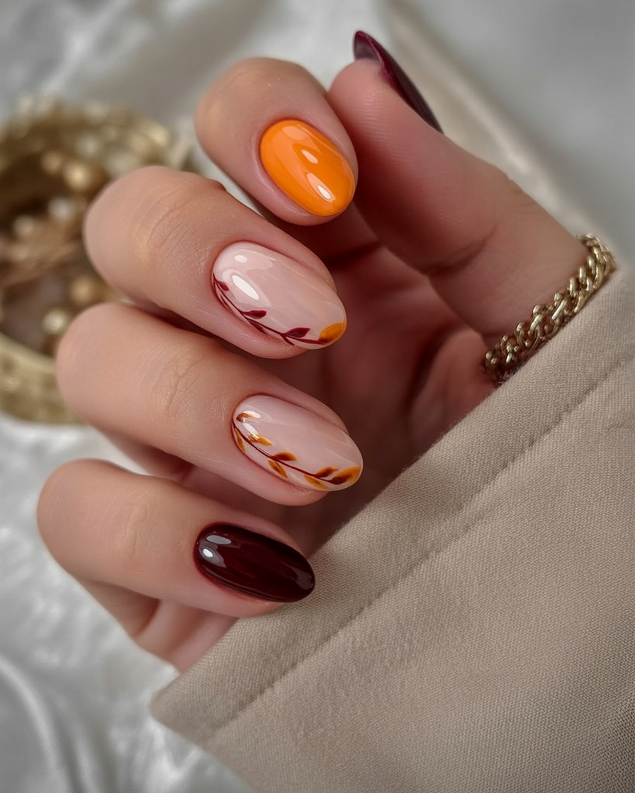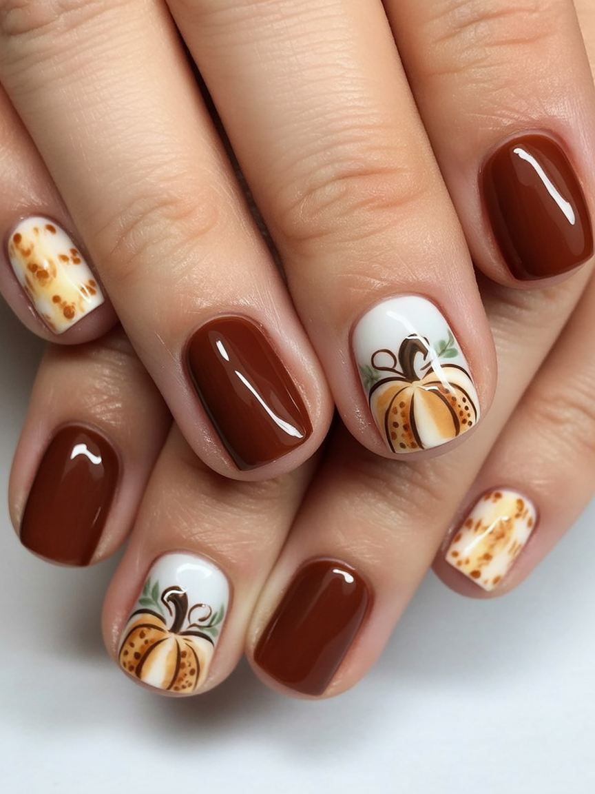 The ideal choice is the female lovers of simple seasonal patterns with some creativity. It is easy and can be worn with short nails with those who prefer a neutral color wardrobe with an autumnal twist.