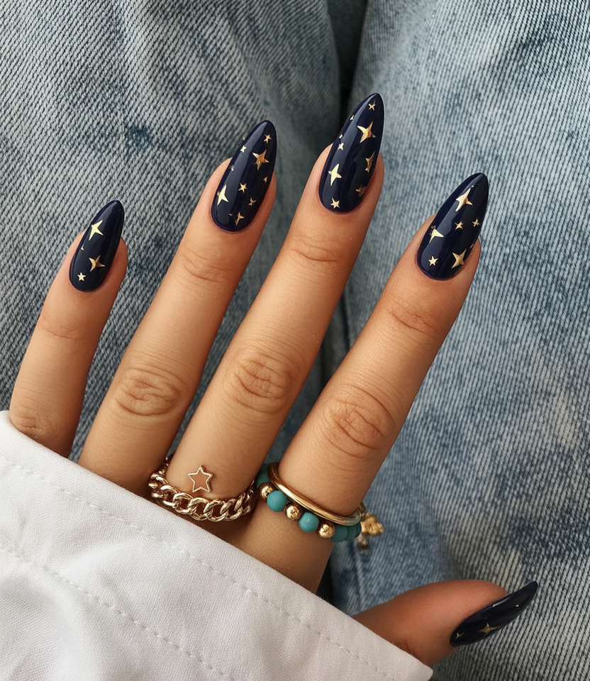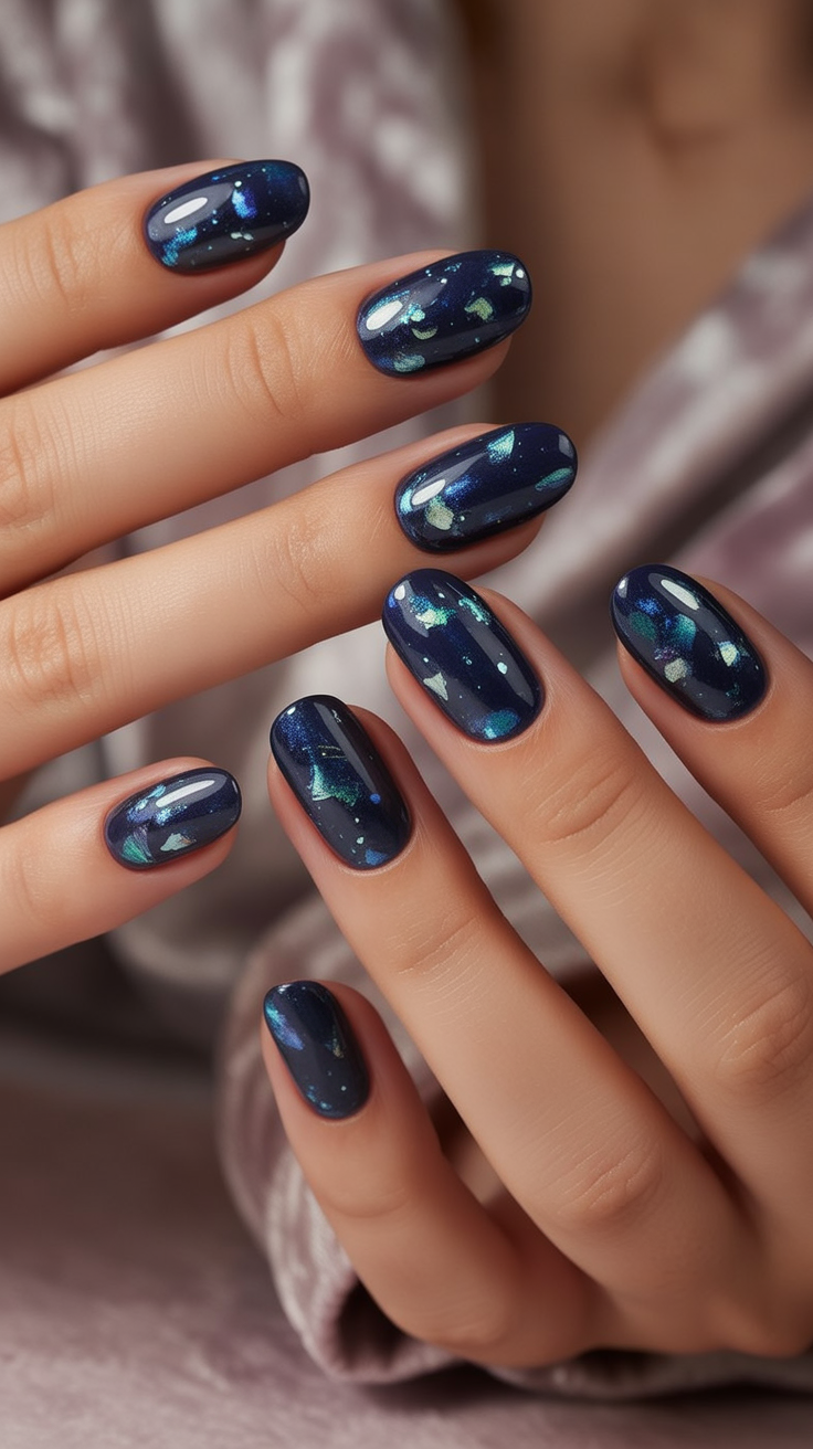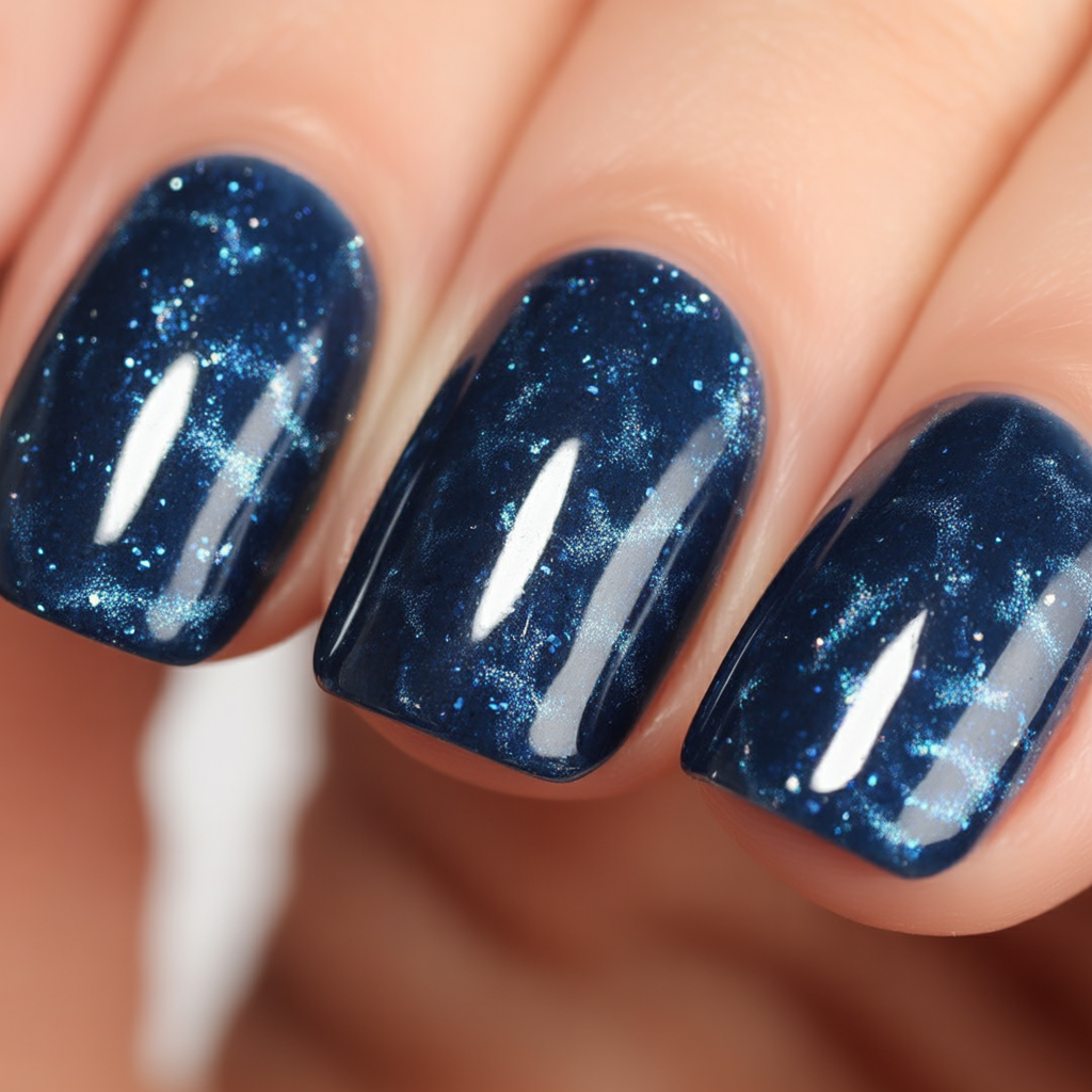 This almond shape design is low-maintenance compared to longer acrylics but still feels polished. The shimmer looks stunning in both daylight and evening lighting, and the deep blue keeps it sophisticated. Wear it with minimal accessories—the nails themselves are the showstopper.