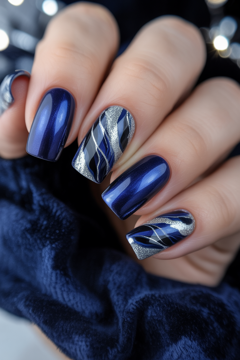 1. Midnight Waves with Silver Accents