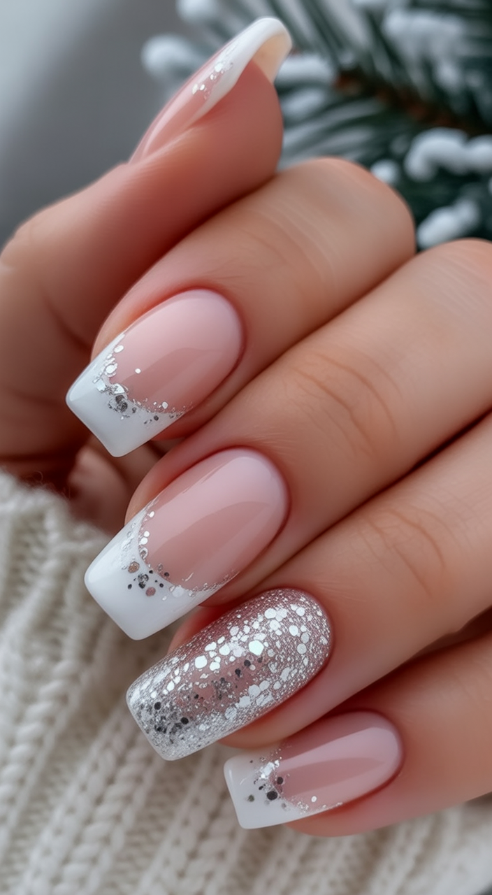 4. Snow-Kissed French with Sparkle