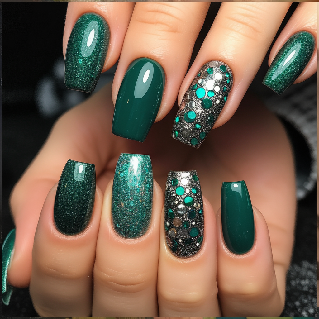 13. Chic Emerald with Glam Accents