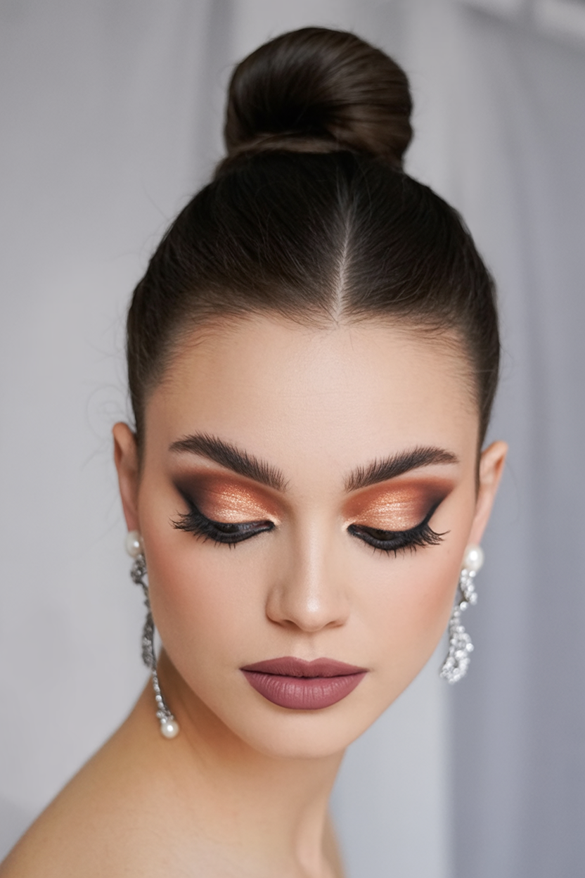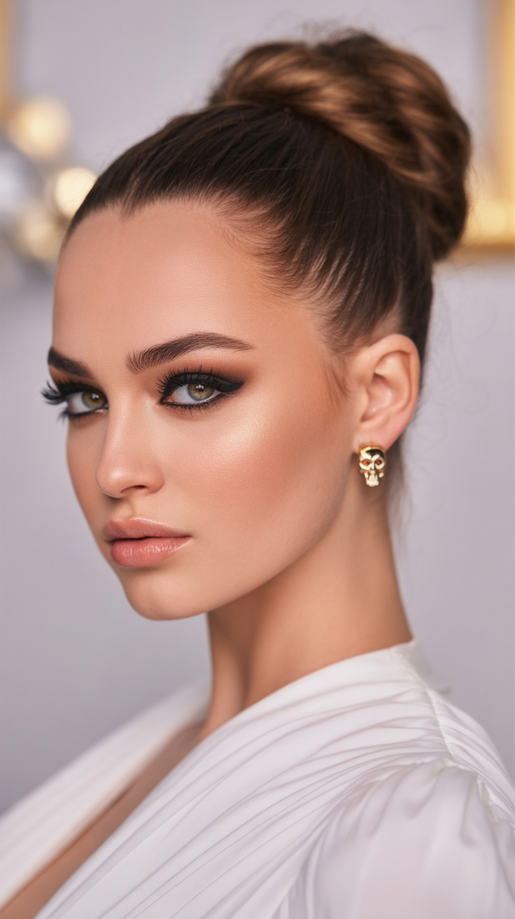 There is something so so easily queenly about a smooth high bun. It pulls the eyes up and it elongates your neck and makes your face framed in the most elegant manner. The gloss and accuracy of the hairline combined with the sleek pearl dangle desire gives this look a sense of red-carpet-worthy-ness-or at least a memorable evening out with friends who look well to do.