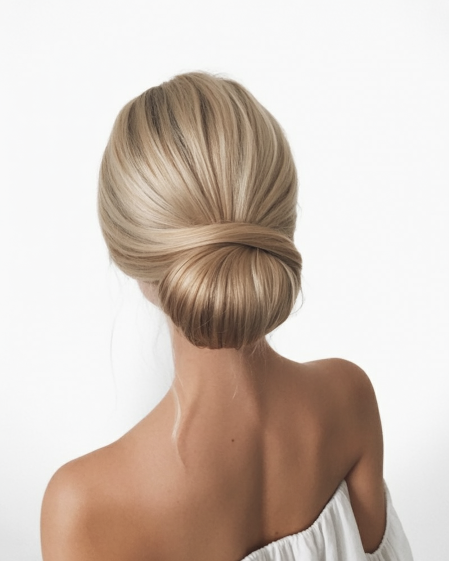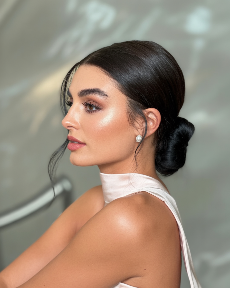 Subtle but utterly beautiful this very minimalist chignon slick back style shows that less really is more. The middle and streamlined sides give it an easily clean profile and the low bun makes it classic.