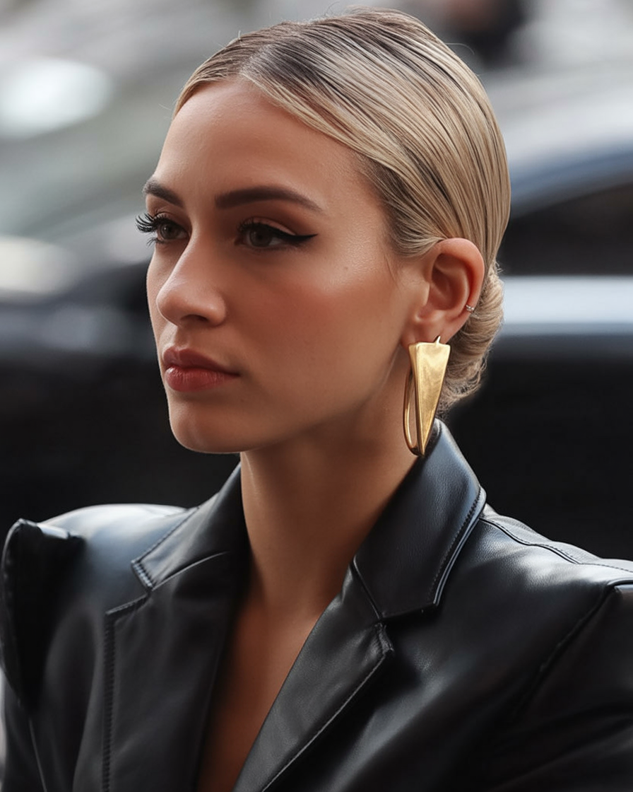 Great on women who can easily smooth out their natural hair textures, the look is low-maintenance but looks refined. Add just a dab of shine serum with a small-toothed comb and you are ready to roll. It looks amazing with both cocktail dresses and tailored suits, meaning that it is one of the most flexible slick back ideas you can implement.