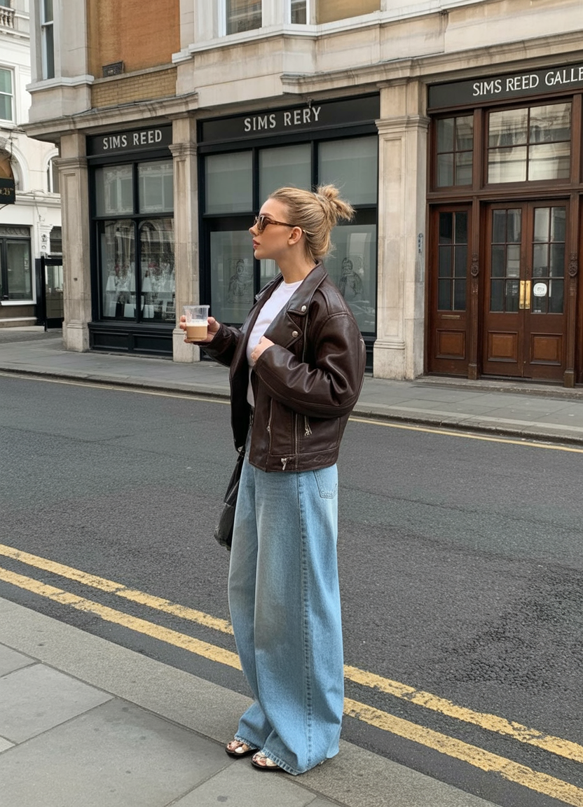 16. Leather Jacket and Denim for a Casual Coffee Run