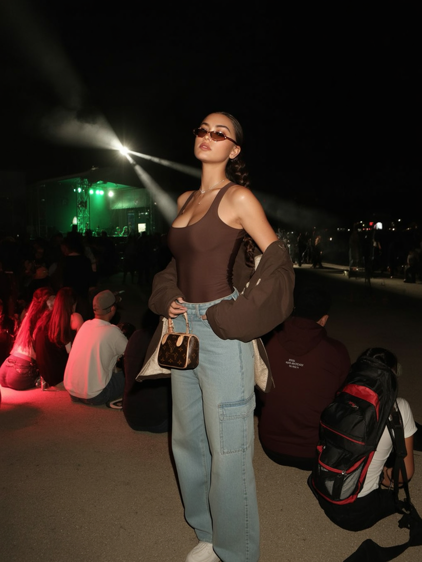 This look leans straight into Baddie energy—confident, bold, and a little edgy. The fitted top paired with loose jeans feels powerful without being overdone, perfect for a Friday night after classes or an evening event. It’s not loud, but it definitely makes a statement.