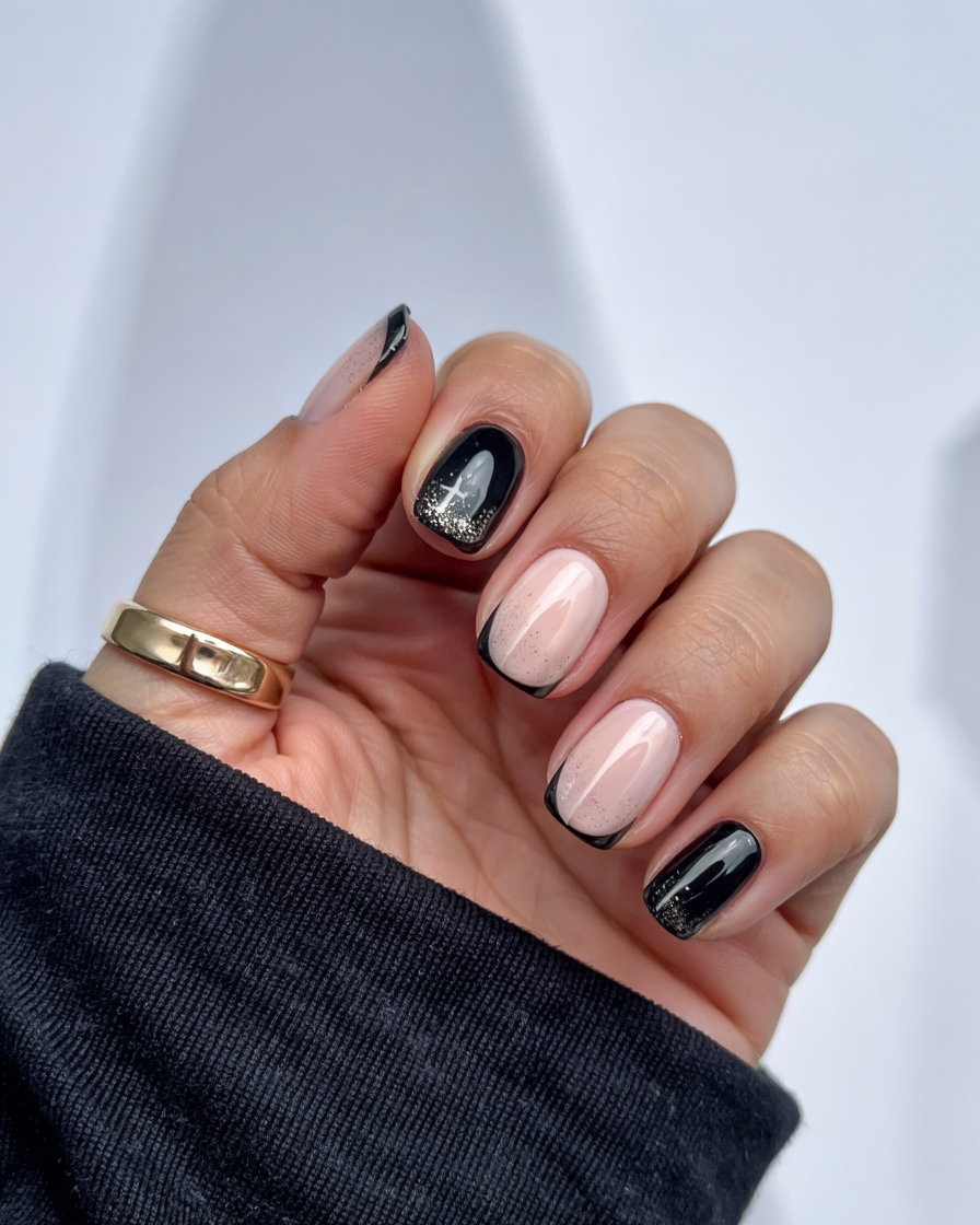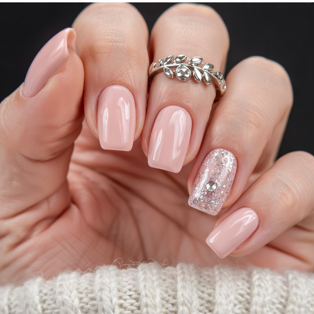 Compared to simpler nude nails, this one adds drama in the best way. The contrast of glitter with soft neutral shades creates a balance that makes it both party-ready and wearable day-to-day. It’s perfect for anyone who loves standing out in a subtle, refined way.