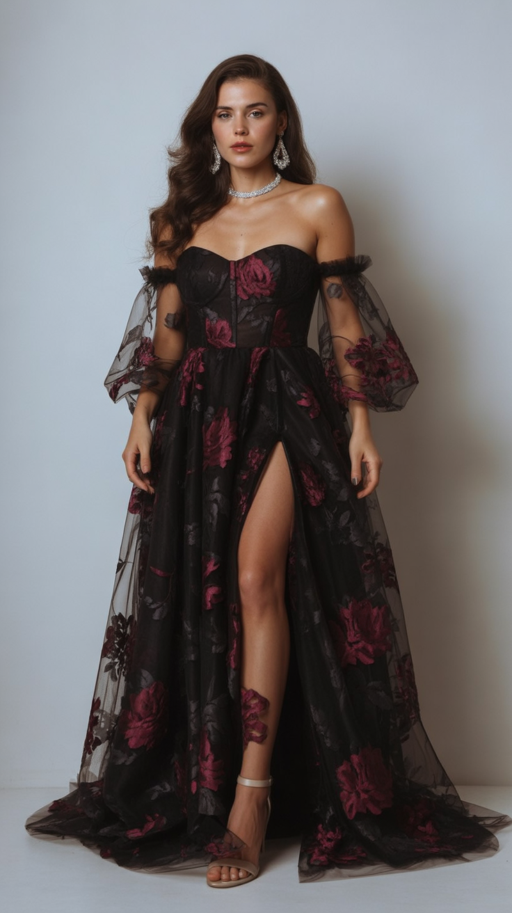 22. Rose-Touched Midnight Elegance