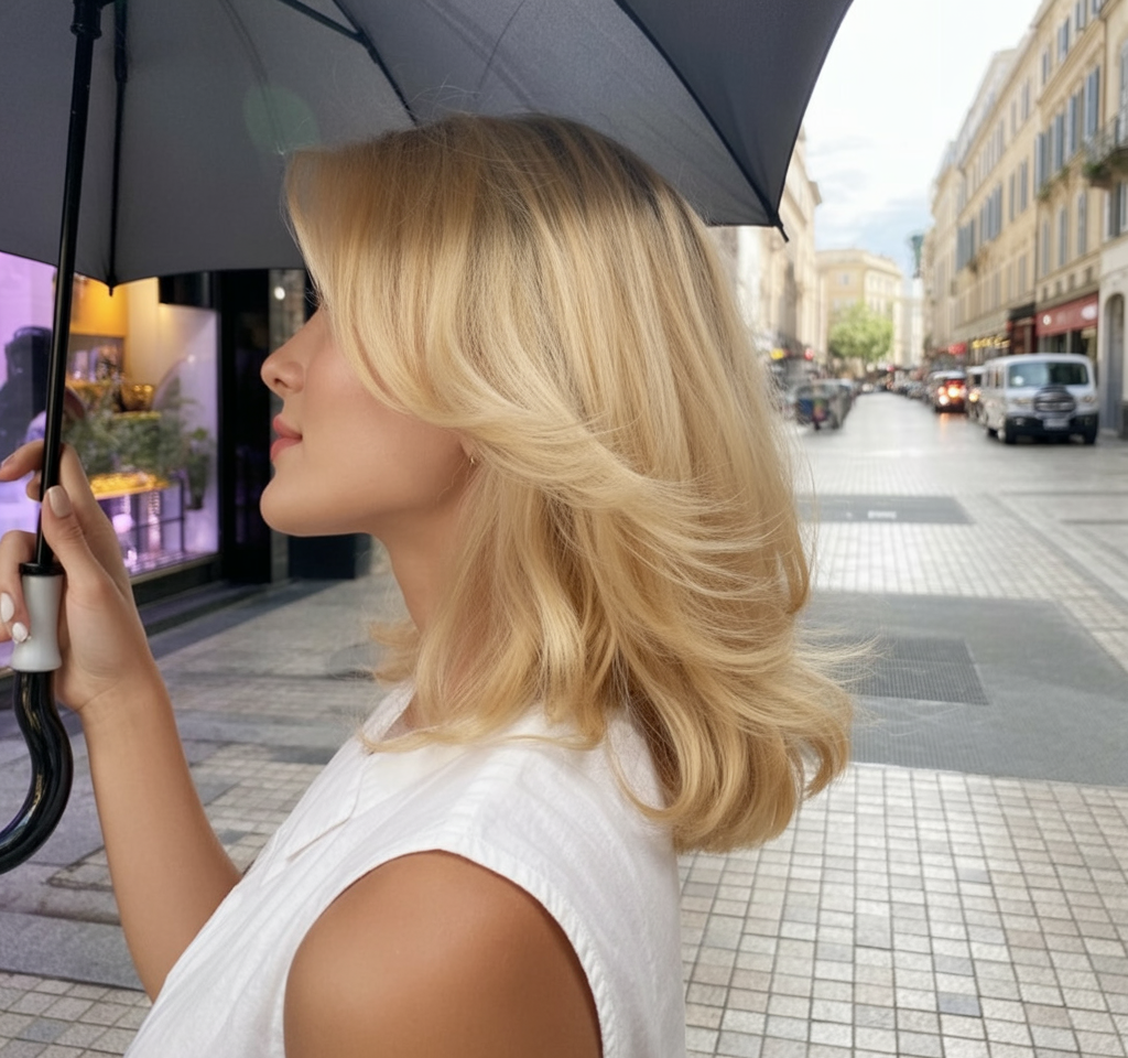 If your hair is medium or thick, this one’s for you. It’s easy to style with a blowout brush or a curling iron to give those ends a natural bend. It pairs perfectly with a minimalist wardrobe or gold accessories—adding a polished finish that feels simple, stylish, and undeniably current.