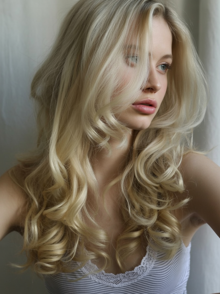 Soft, flowing waves with a golden sheen—this style captures that dreamy “sunset glow” look of the early 2000s. It’s romantic, classic, and instantly elevates your everyday style. The cascading waves fall gracefully, giving your hair a touch of luxury that feels natural and effortless at once.