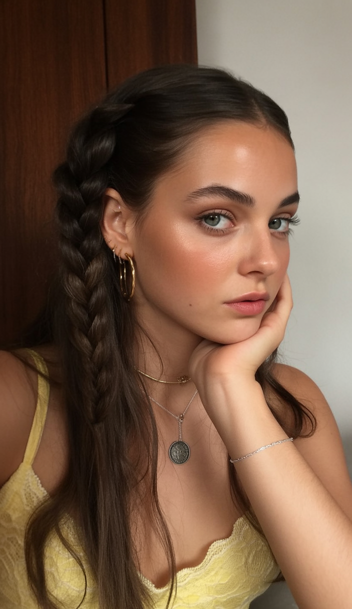 Ideal for straight hair or long hair, this look suits those who like something easy yet elevated. Simply braid one or both sides, secure discreetly, and finish with a bit of shine serum. It’s a simple twist that transforms your daily routine into a 2000s-inspired tutorial moment that’s timeless and endlessly flattering.