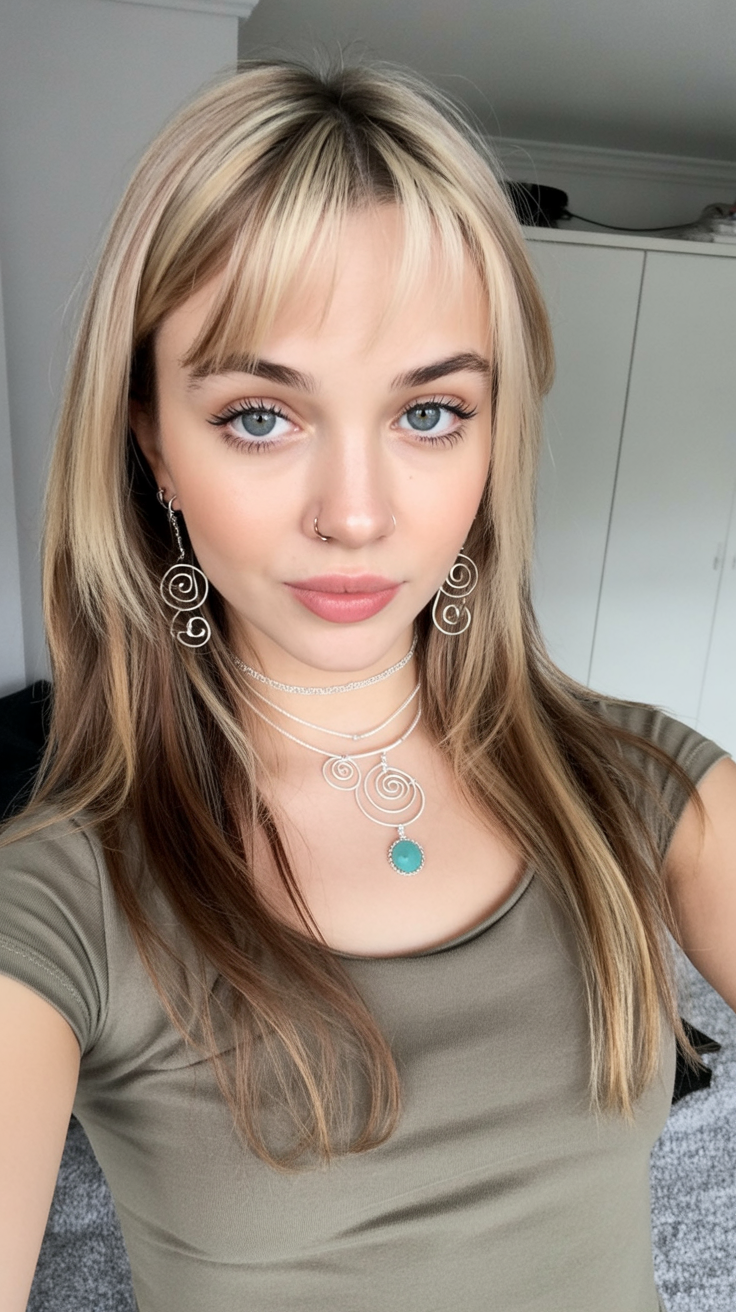 There’s a delicate charm in this wispy bangs look that instantly feels nostalgic yet fresh. The soft, face-framing pieces and natural highlights whisper early 2000s while keeping it light and wearable. It’s romantic without trying too hard—an effortless style that says you care, but you’re not overthinking it.