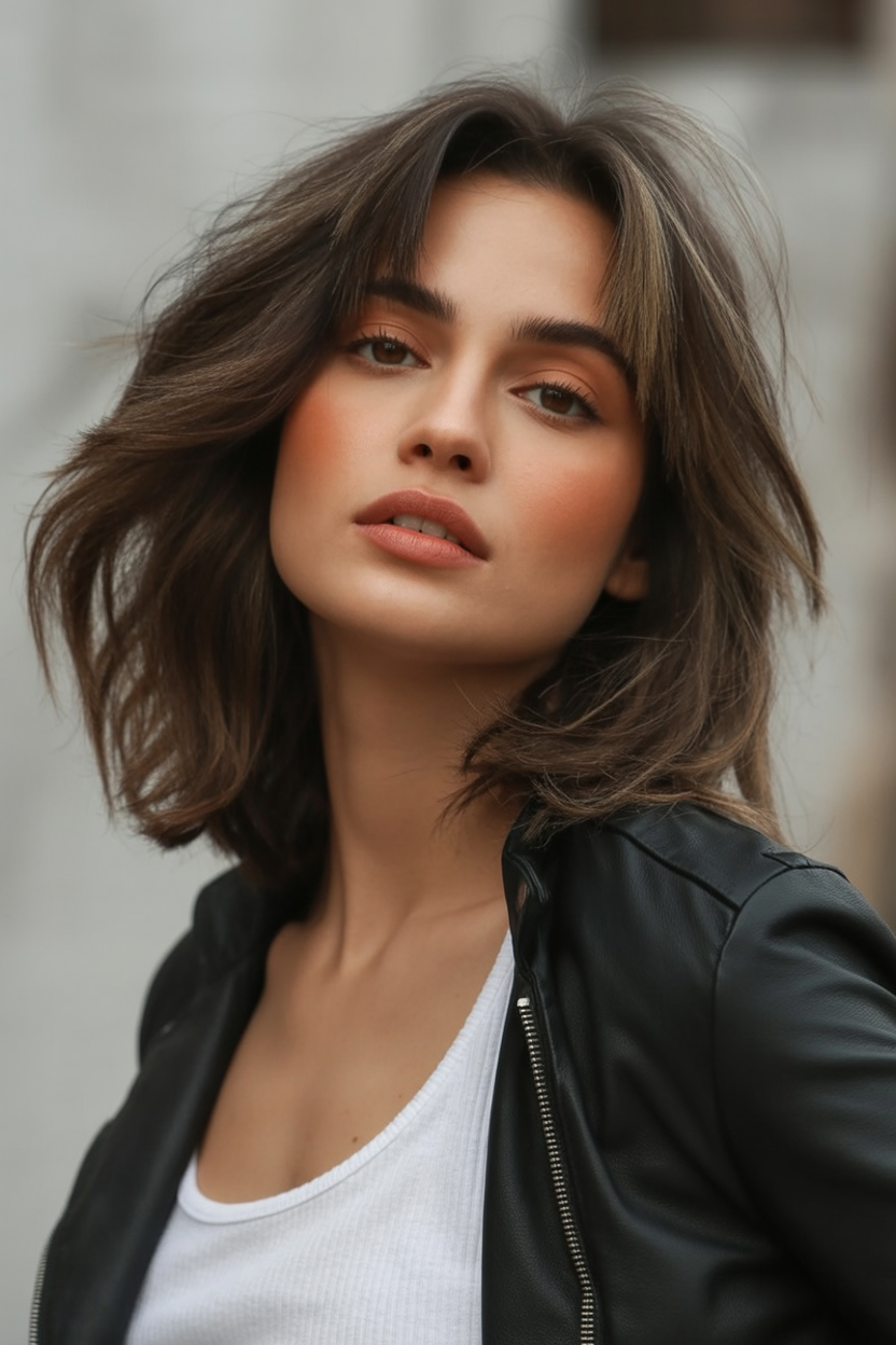 Rich, moody, and full of movement—this textured chocolate lob gives off that confident “I know my style” energy. The tousled layers add softness, while the side part and airy texture create just the right amount of 2000s flair. It’s easygoing but chic, perfect for women who love to mix polish with a touch of rebellion.
