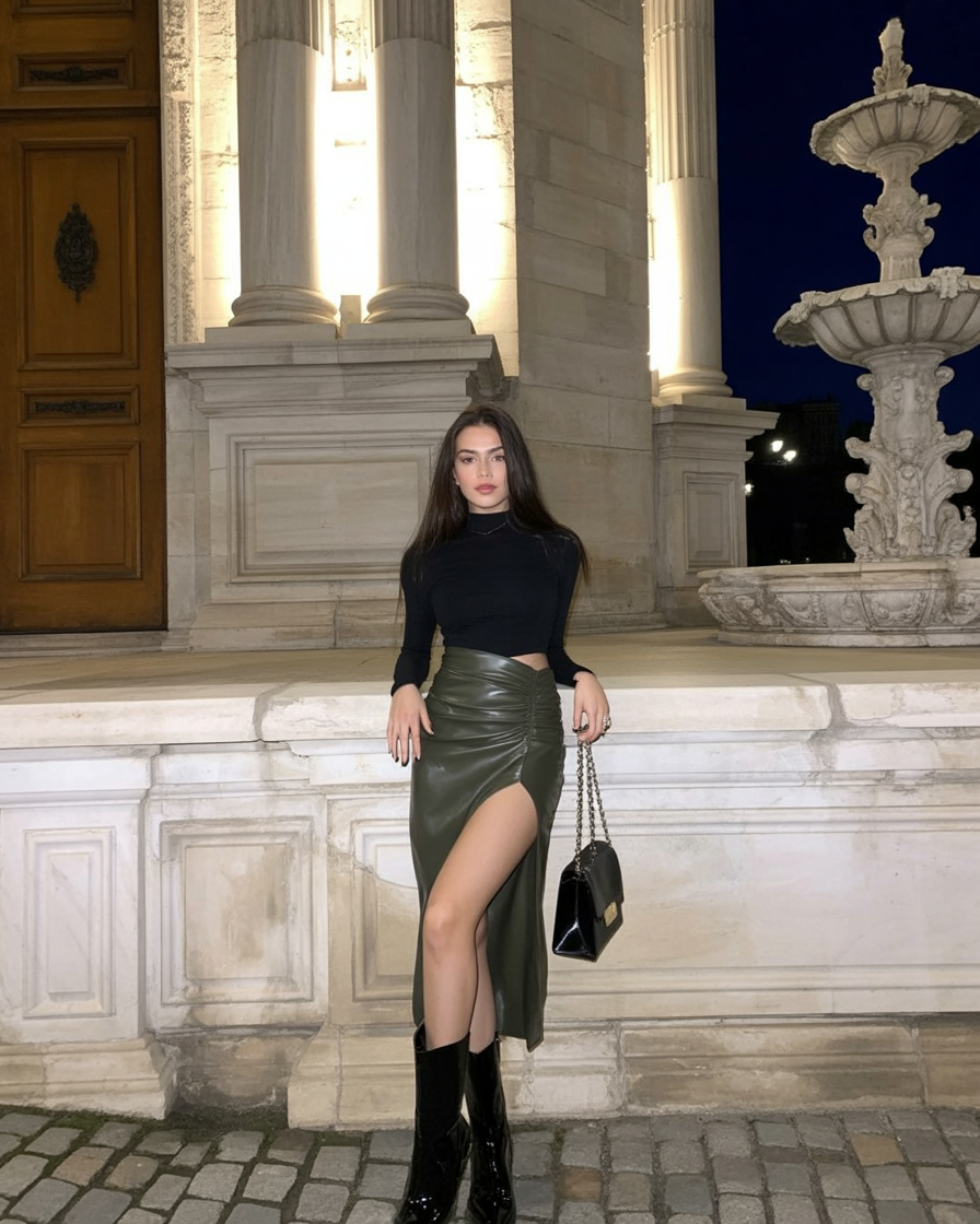 This look works wonders for women celebrating in winter or late December. The textures give warmth while still being ultra stylish. It’s ideal for straight or athletic body types thanks to the sculpting silhouette, and those tall boots? A bold bonus. If you want to serve baddie meets boss, this is your go-to.