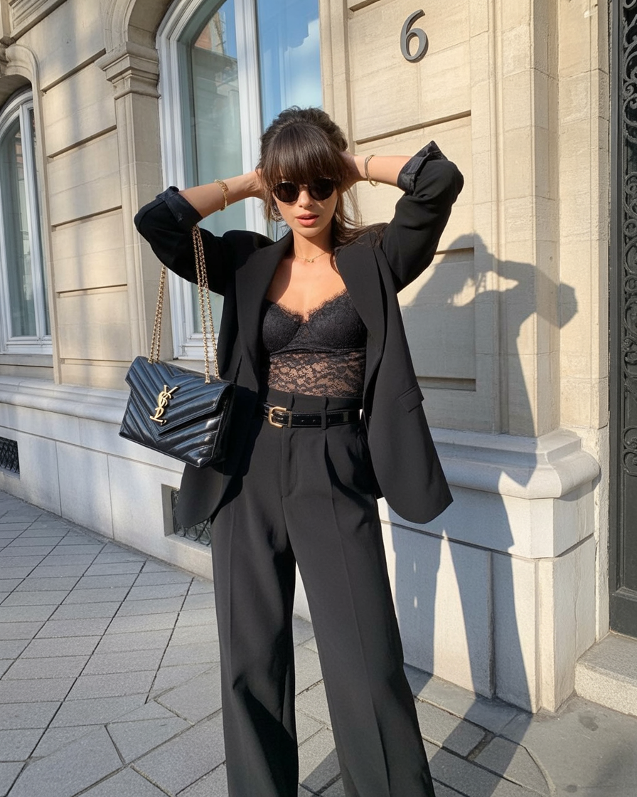 This look is fabulous for tall and lean builds or anyone wanting to highlight their waist while keeping things sleek on the bottom. You can wear it to a gallery dinner, cocktail hour, or even a 30th birthday night out. Add a bold red lip or a sharp bob, and you’re serving 2026 editorial realness.