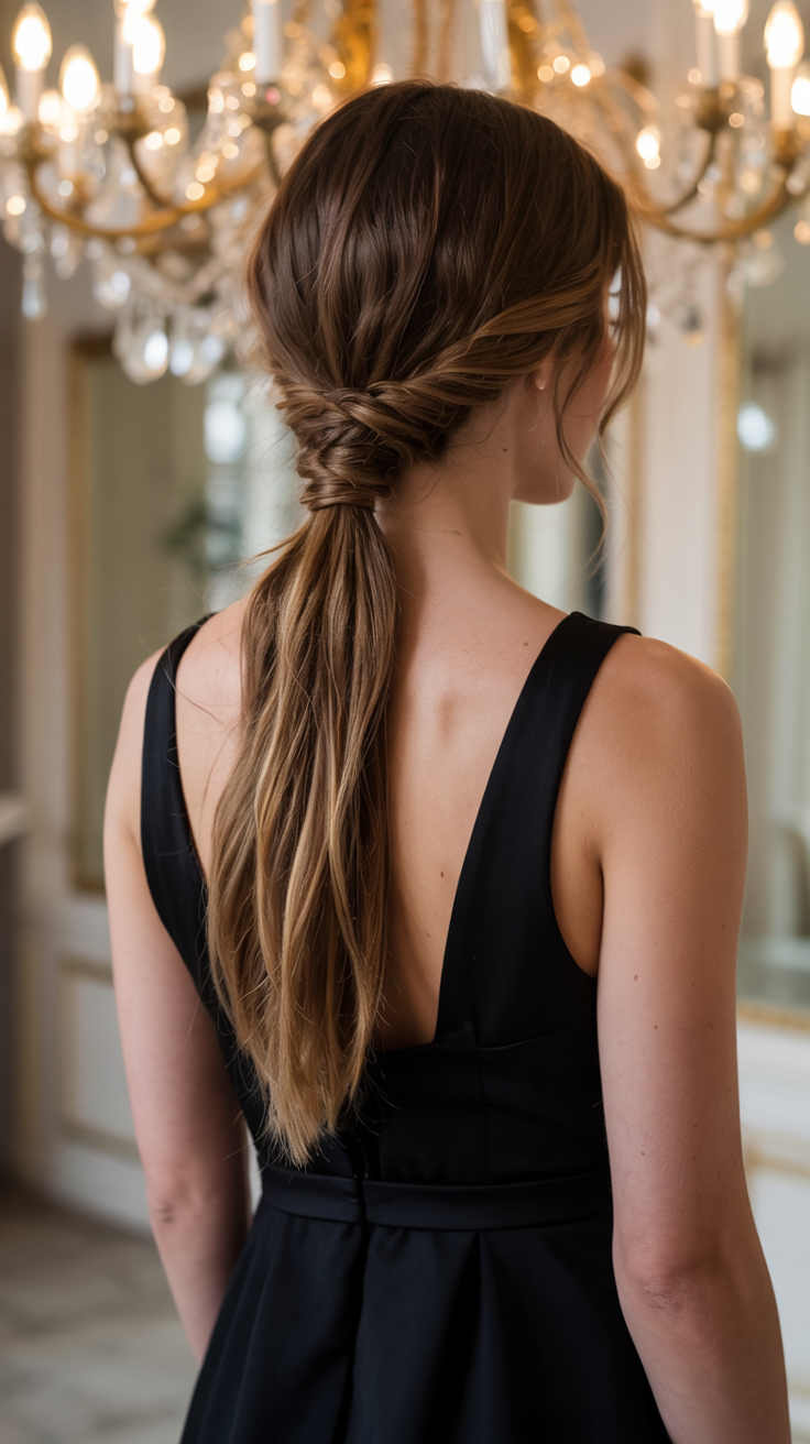 It is an excellent alternative to those who love half up half down styles with long hair and desire a convenient and at the same time romantic hairstyle. The twist on one side makes it interesting to hair which is fine or thin whereas the ponytail keeps the hair away off your face and shoulders. Throw in some pearl pins or ribbon of your dress color and you are all set to have a bridesmaid style that is camera friendly as well as comfortable.