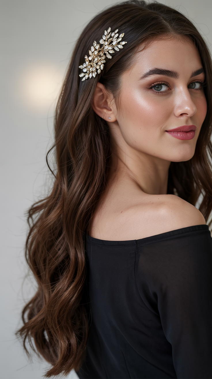 This style suits long hair and flat curls are best attained by blow dry hair smooth and then curl it. A side swept accessory is the best option in case you want to simply wear a one-shoulder gown or a dress with asymmetrical neckline.