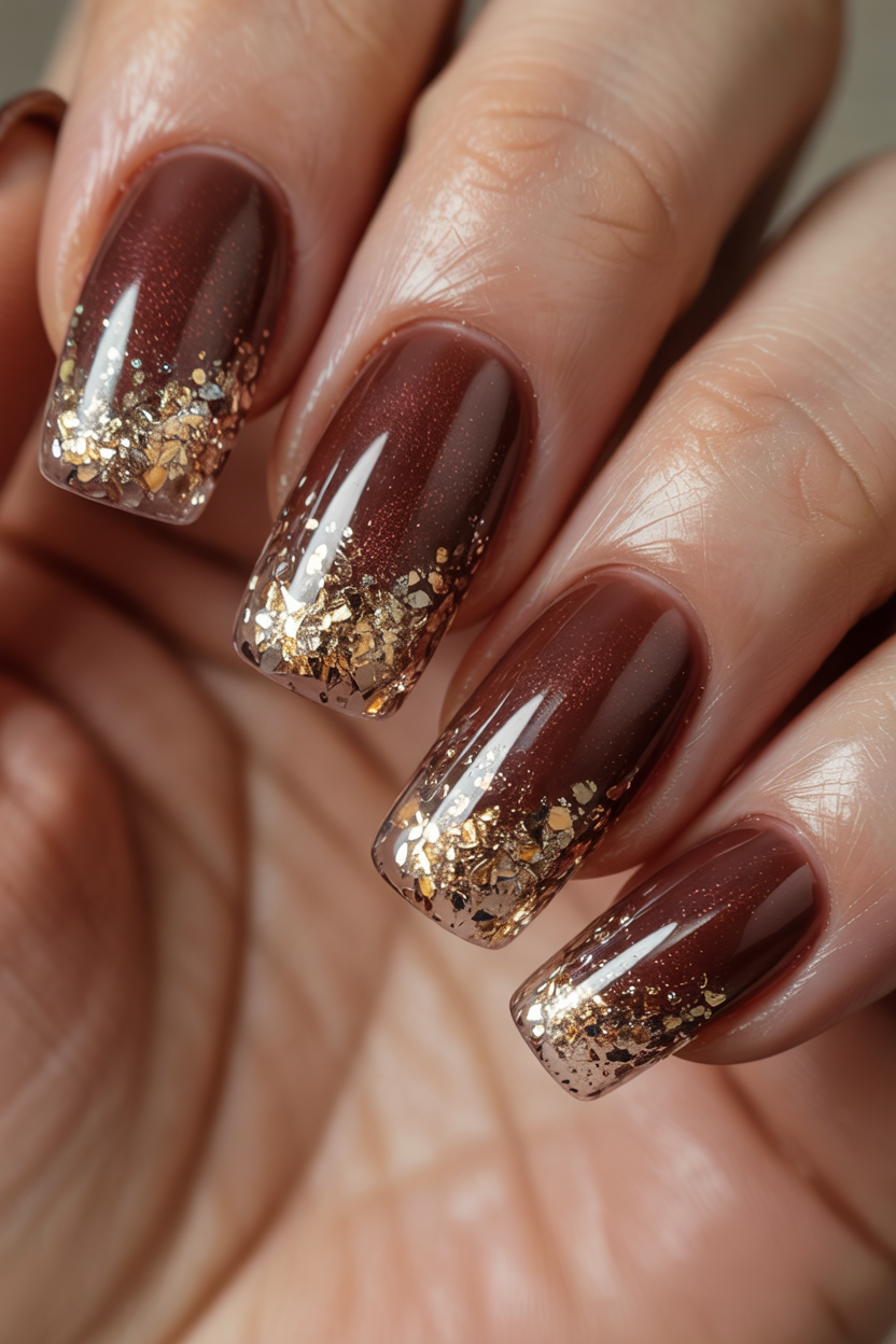 2. Brown and Gold Glitter French