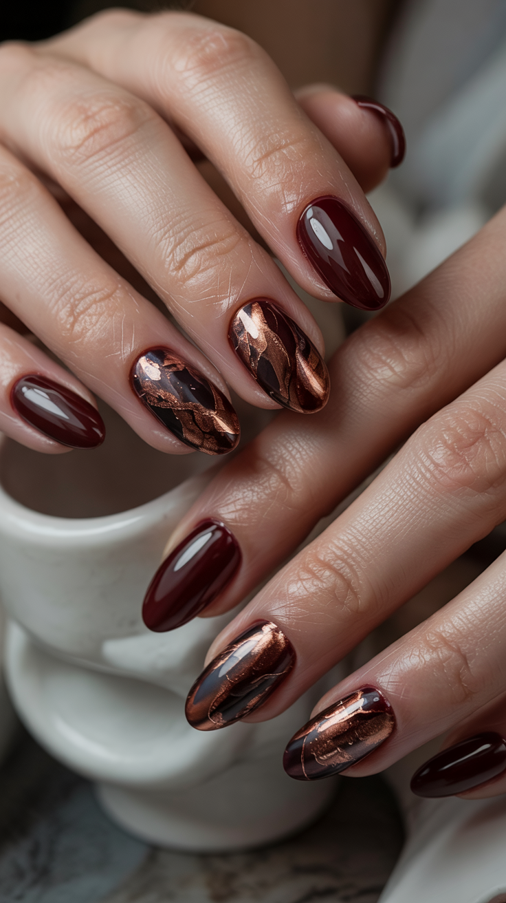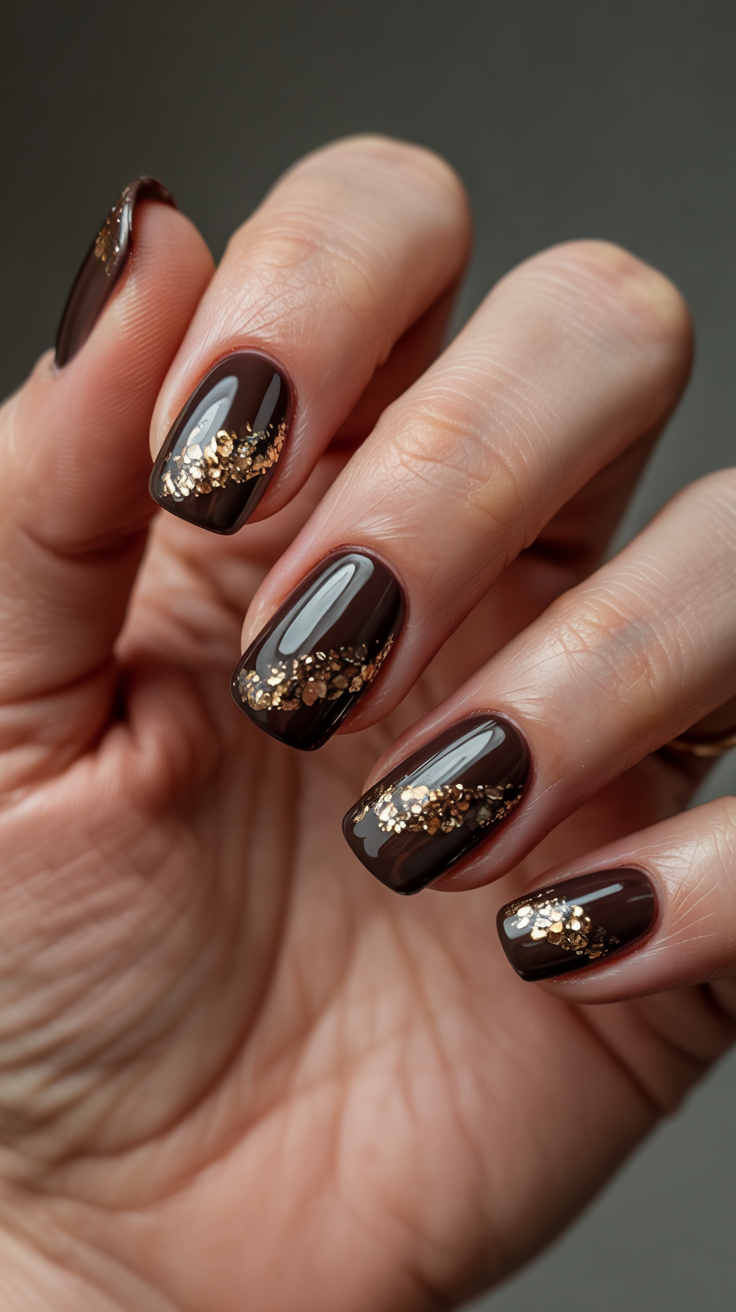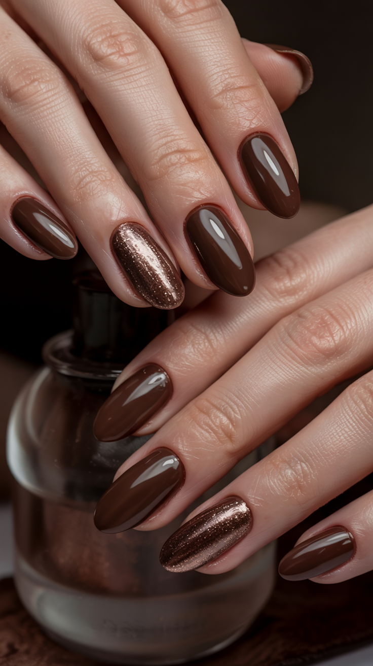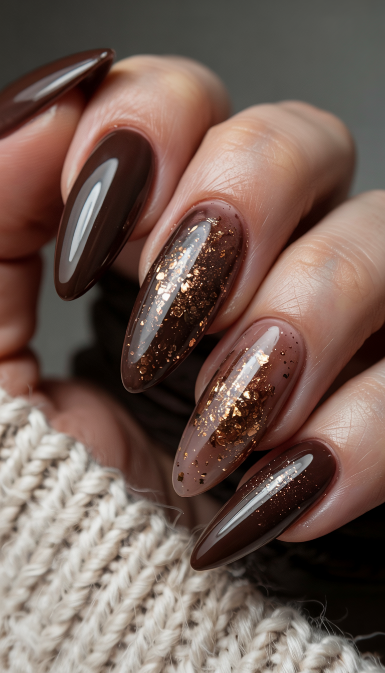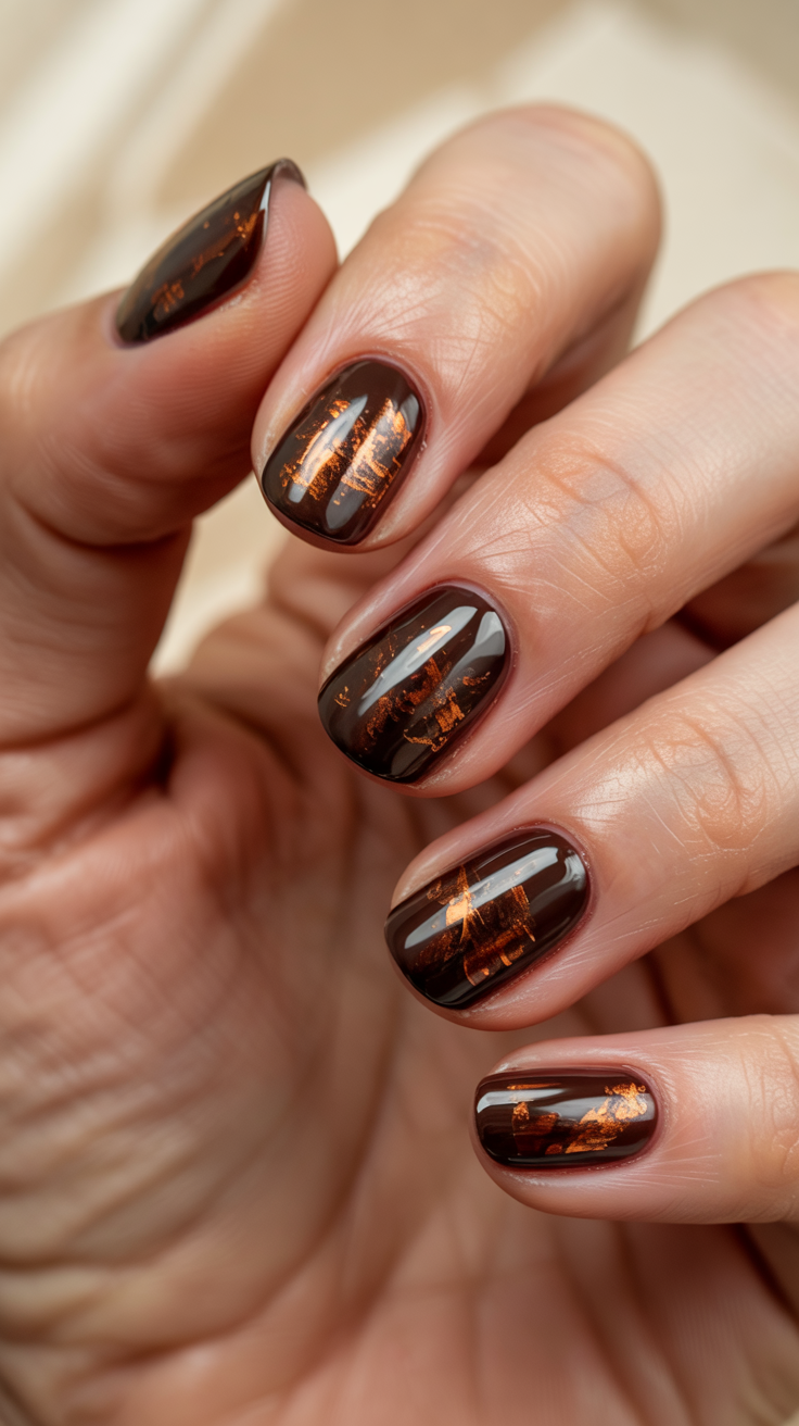 24. Chocolate and Copper Accent Nails