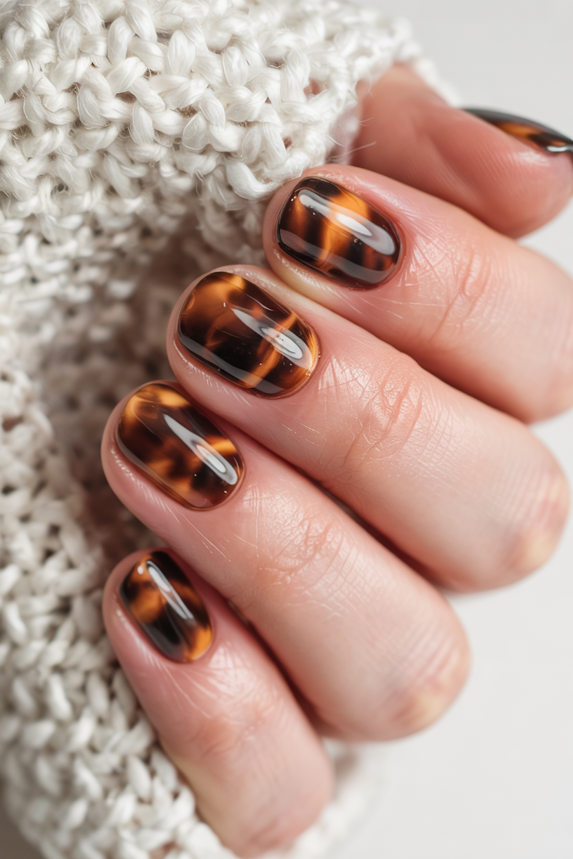 Tortoiseshell nails are always in season and in style—and this amber-brown shade is a great example of that. The glossy and intricate design looks vintage and contemporary all at once—like a fashion accessory directly from a designer catwalk. It is fun and elegant all in one and looks like a piece of art on your finger. Short to medium nails are perfect for this look and are actually very versatile and suitable for all seasons. It looks great when paired with rings in coffee and gold and exudes that whole editorial, fashion окрем look. So, if you like natural textures and some warmth in your colors, this one is for you and is a great blend of fashion and retro.