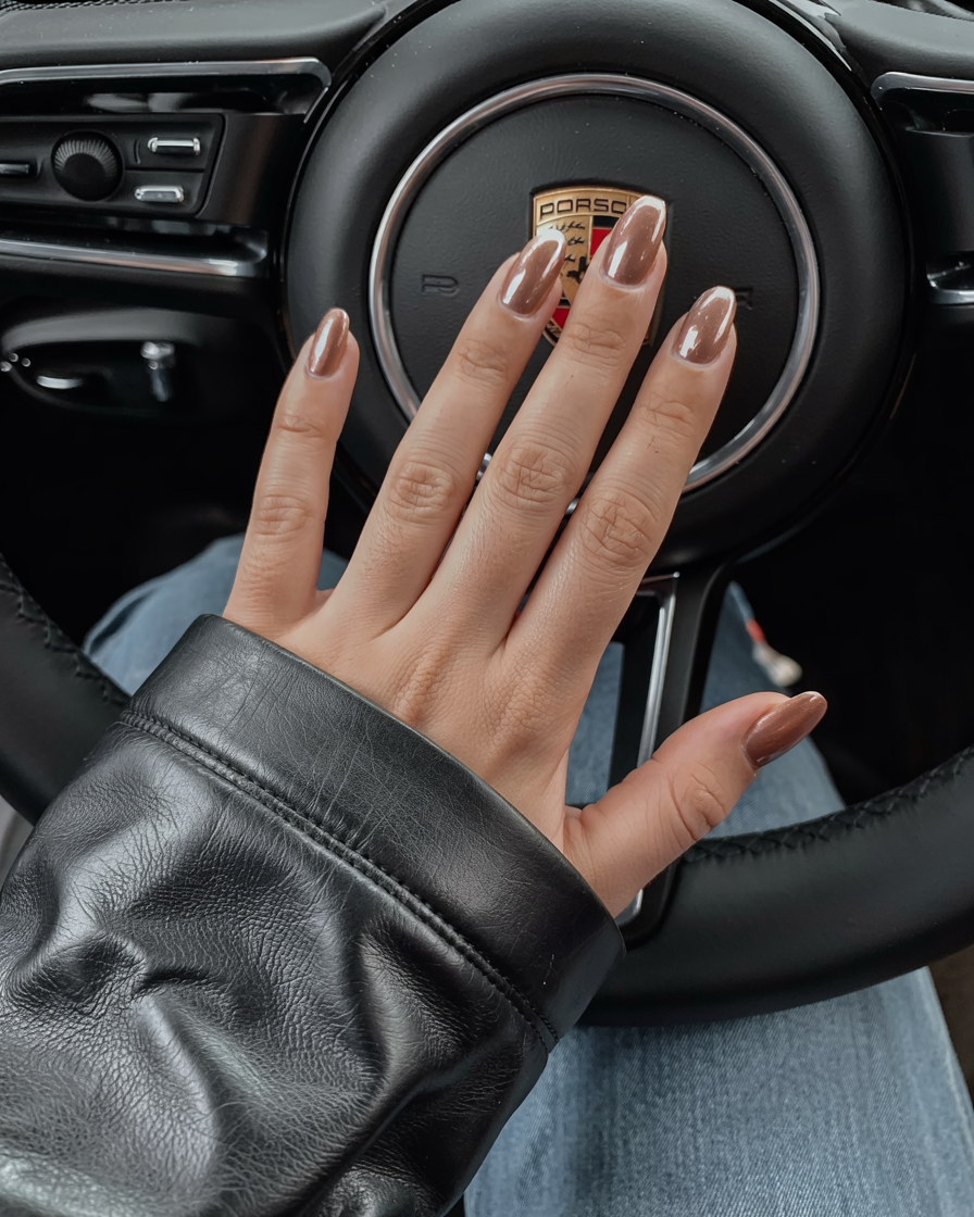 If you like statement nails but want to remain within the world of chocolate colors, this is for you. The styling suits oval and almond-shaped nails perfectly. It offers just enough polish to have your nails stand out but not enough to overwhelm your appearance.