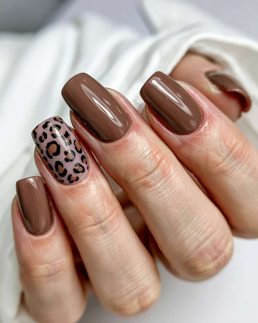 20. Leopard Accent Brown Nails